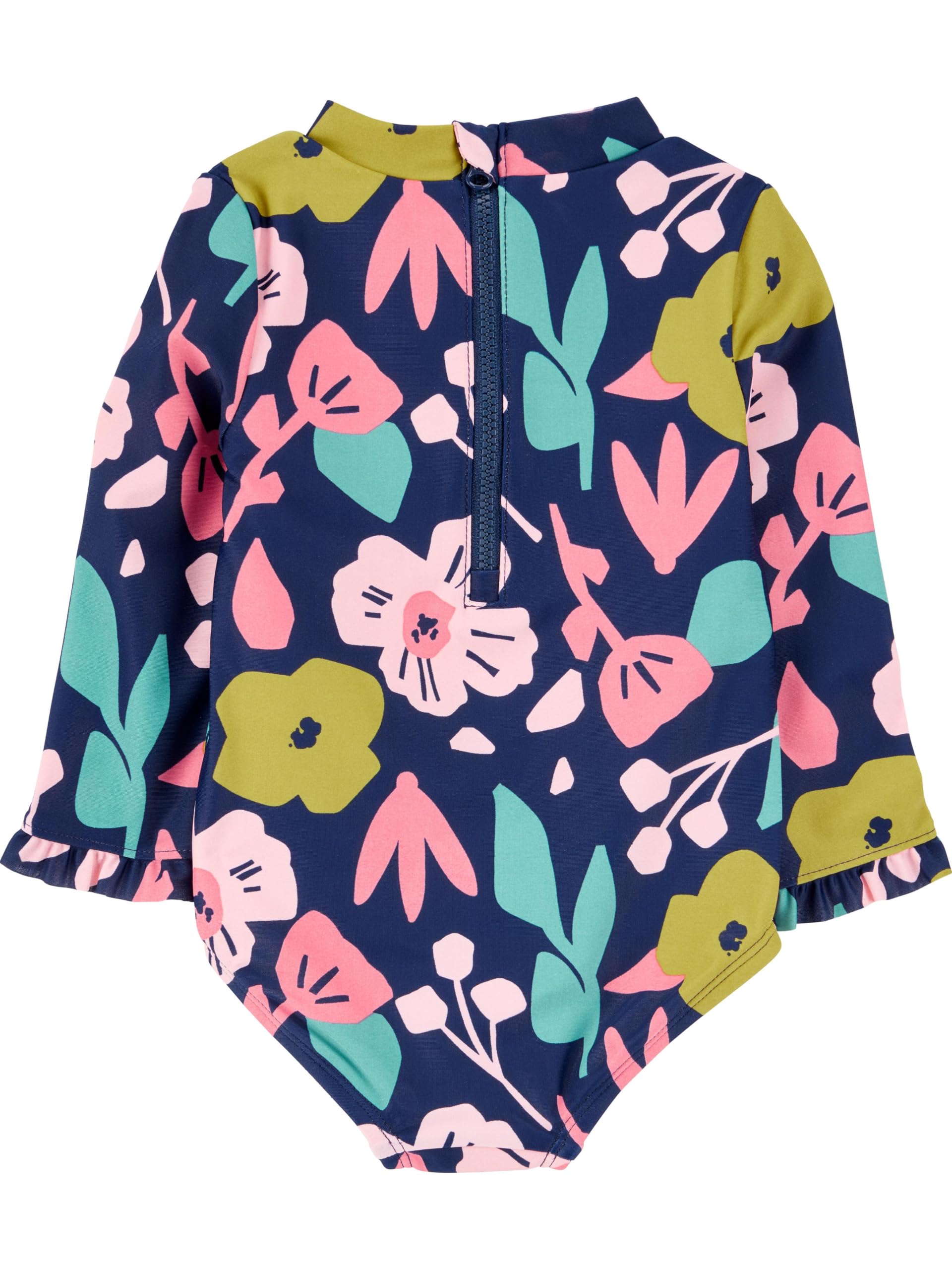 Description Make a splash in style with this One-Piece Long Sleeve Zip-Up Rashguard Swimsuit for Girls from Simple Joys by Carterβs! Designed with playful prints and vibrant colors, this swimsuit combines fashion with functionality for endless fun in the sun. The long sleeves and high neckline provide extra coverage, while the built-in UPF 50+ protection helps shield delicate skin from harmful UV rays. The convenient front zip makes it easy to slip on and off, so sheβs always ready to dive into her next adventure. Durable, comfortable, and quick-drying, this swimsuit is perfect for pool days, beach trips, and water play β a must-have for sun-safe fun!