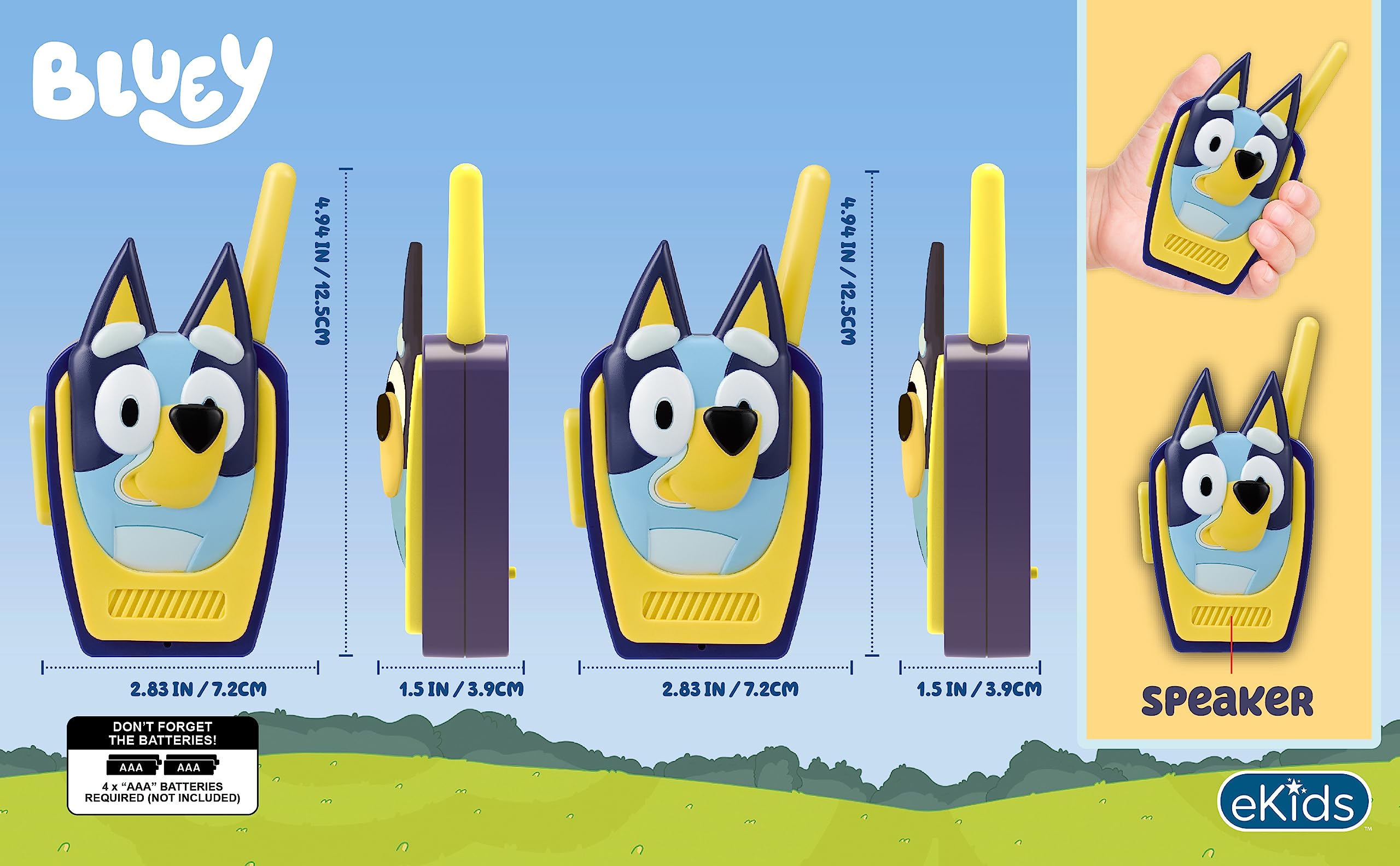 Walkie Talkies for Kids: Two way radios featuring cute graphics and sculpted design inspired by Bluey