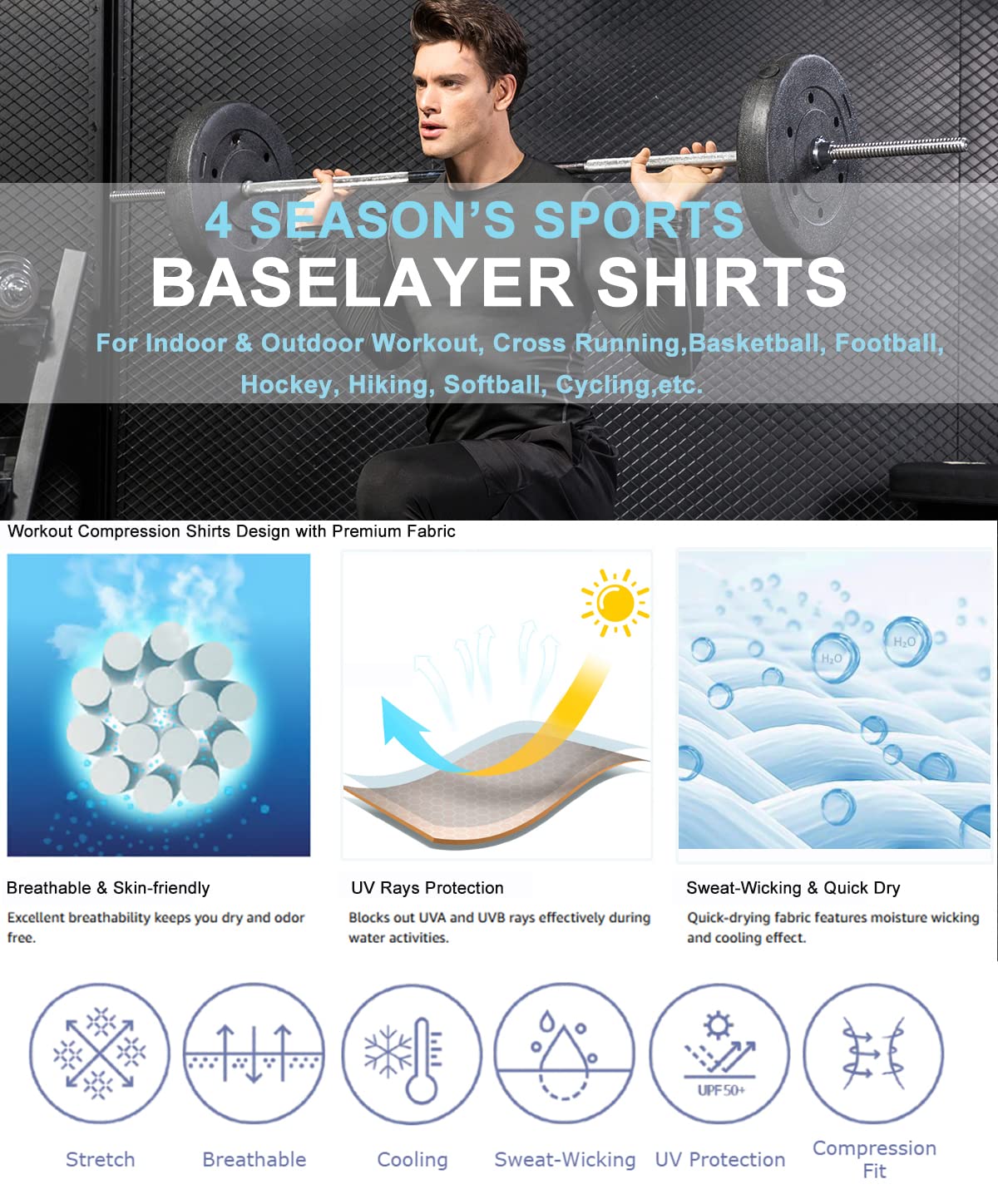 ➤【DESIGNED FOR ALL-SEASON】: Great Performance gym shirts in warm or COLD WEATHER. Sweat and Moisture can be pulled away from skin very quickly. Our mens baselayer undershirts are perfect option during various indoor activities and outdoor excursion.