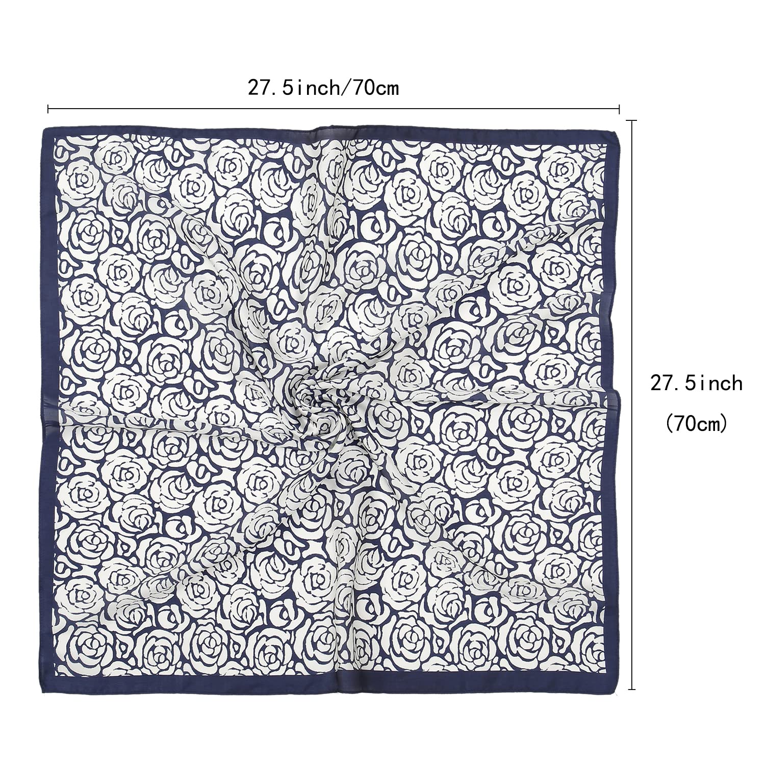 Size of the square scarf is 27.5'' x 27.5'', which can be used as a hair scarf, scarf top, neck scarf, hair wrapping at night, pirate head scarf on Halloween, also can be used for hat and handbag decoration.