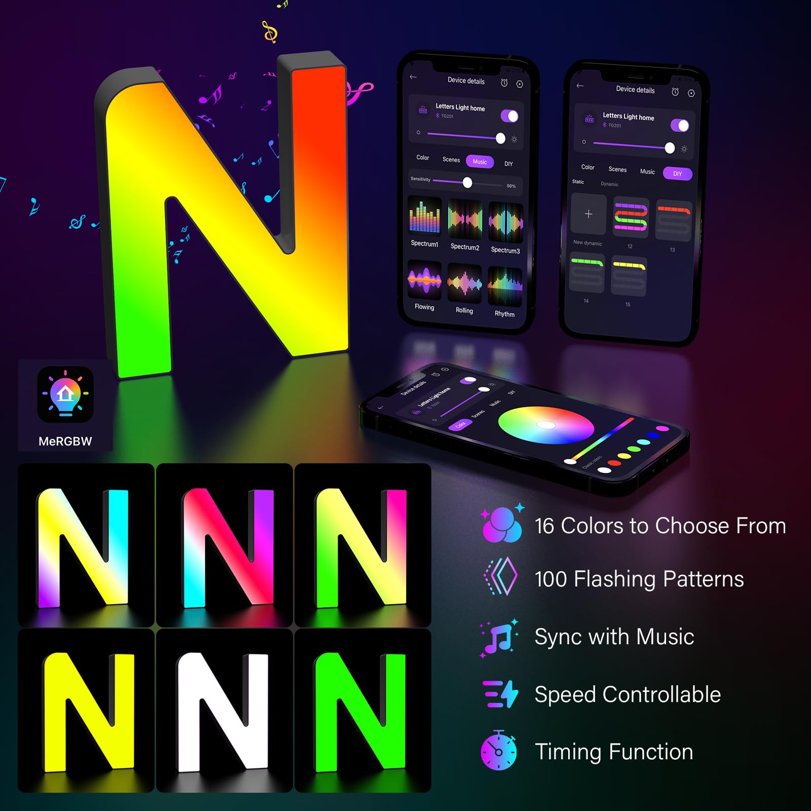 Smart APP Free DIY: The LED letter lights can be freely controlled by remote control or smart APP, with hundreds of different colors and rhythmic light effects. The LED lights are colorful, durable, and have adjustable brightness. You can also DIY your own unique colors and combinations to suit the atmosphere of the room