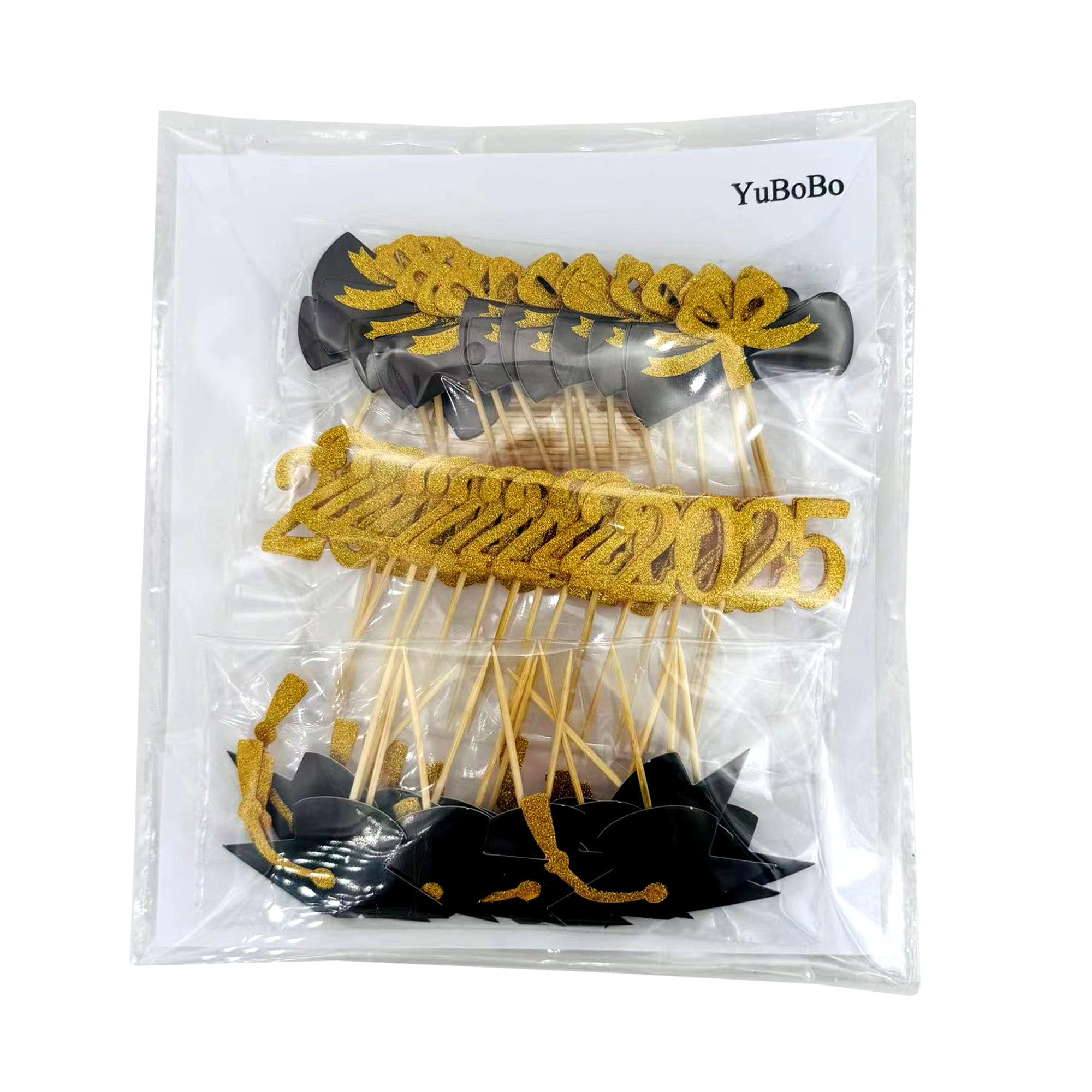 Package Include 16*Diploma Picks,16*2025 Picks,16*Graduation Cap. Totally 48 Pieces