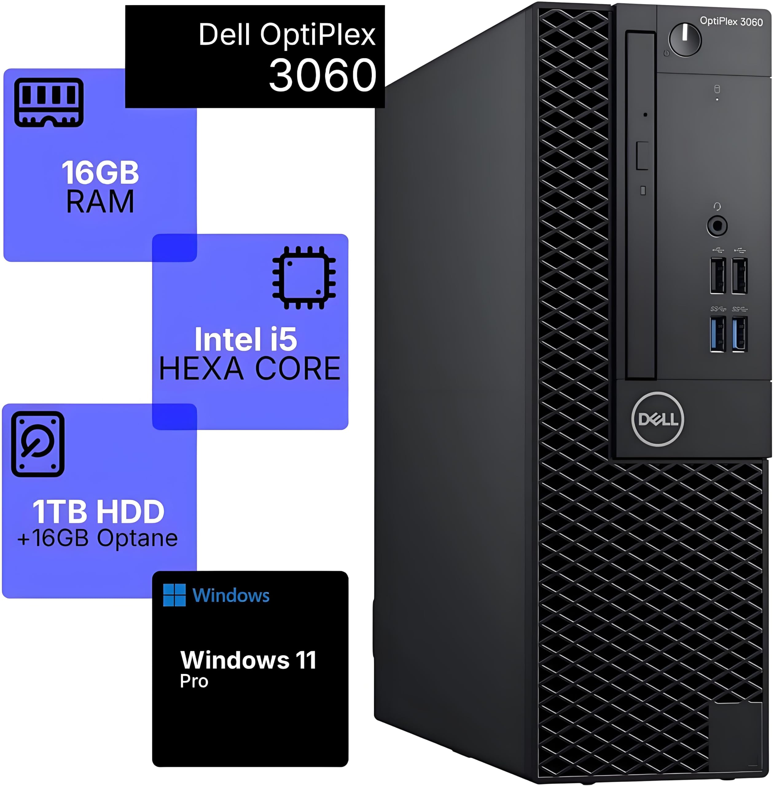 Dell OptiPlex 3060 SFF Desktop Computer, Intel Core i5-8500, 16GB DDR4, 16GB Intel M.2 Optane Memory + 1TB HDD, Built-in Wi-Fi + Bluetooth, HDMI + DisplayPort, Windows 11 Pro (Renewed)