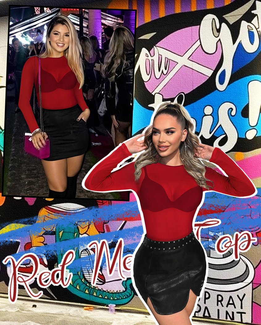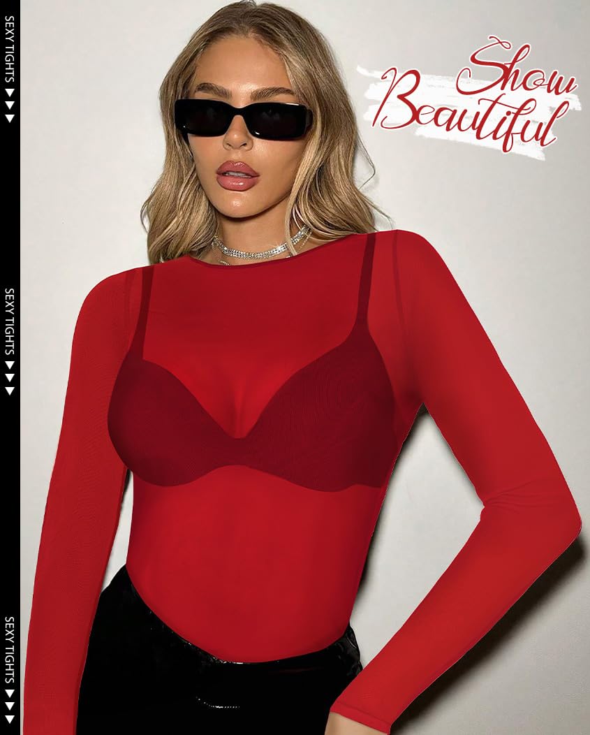 Feature: Mesh top, See through, Stretch tee, Long sleeves, Round neck, Classic long style, slim fit, sheer tops can enhance the fashion sense of your outfit.