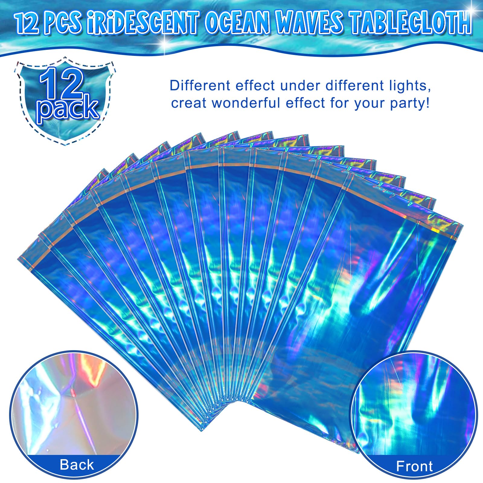 Package Include: you will get 12 pieces of plastic ocean waves tablecloths in iridescent blue,shimmery metallic look,shows different color effects under different light,will bring you a wonderful experience,it’s great for surf, pool ,under the sea and ocean themed party decorations.