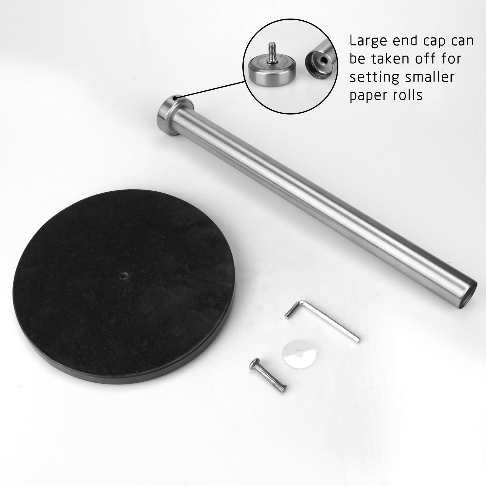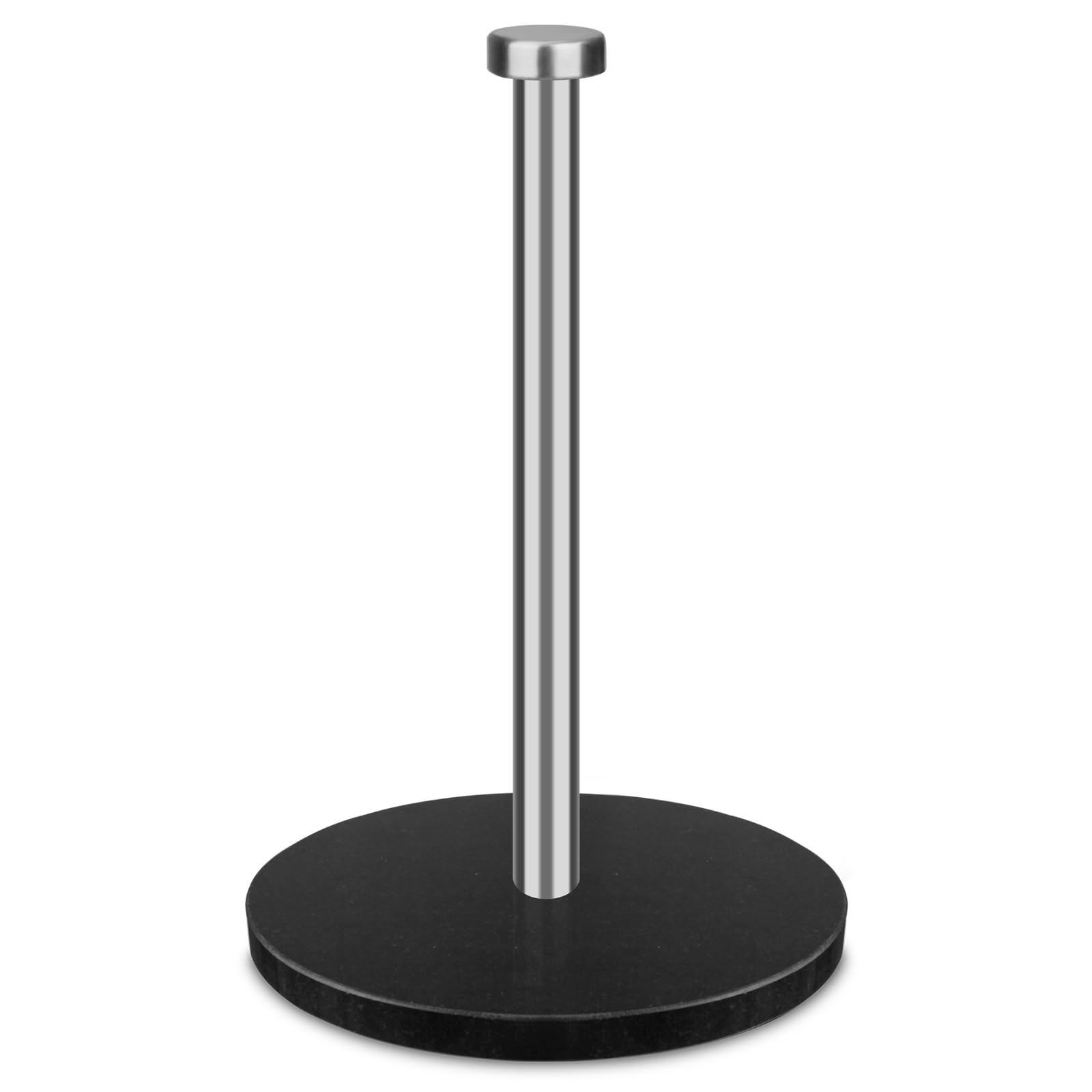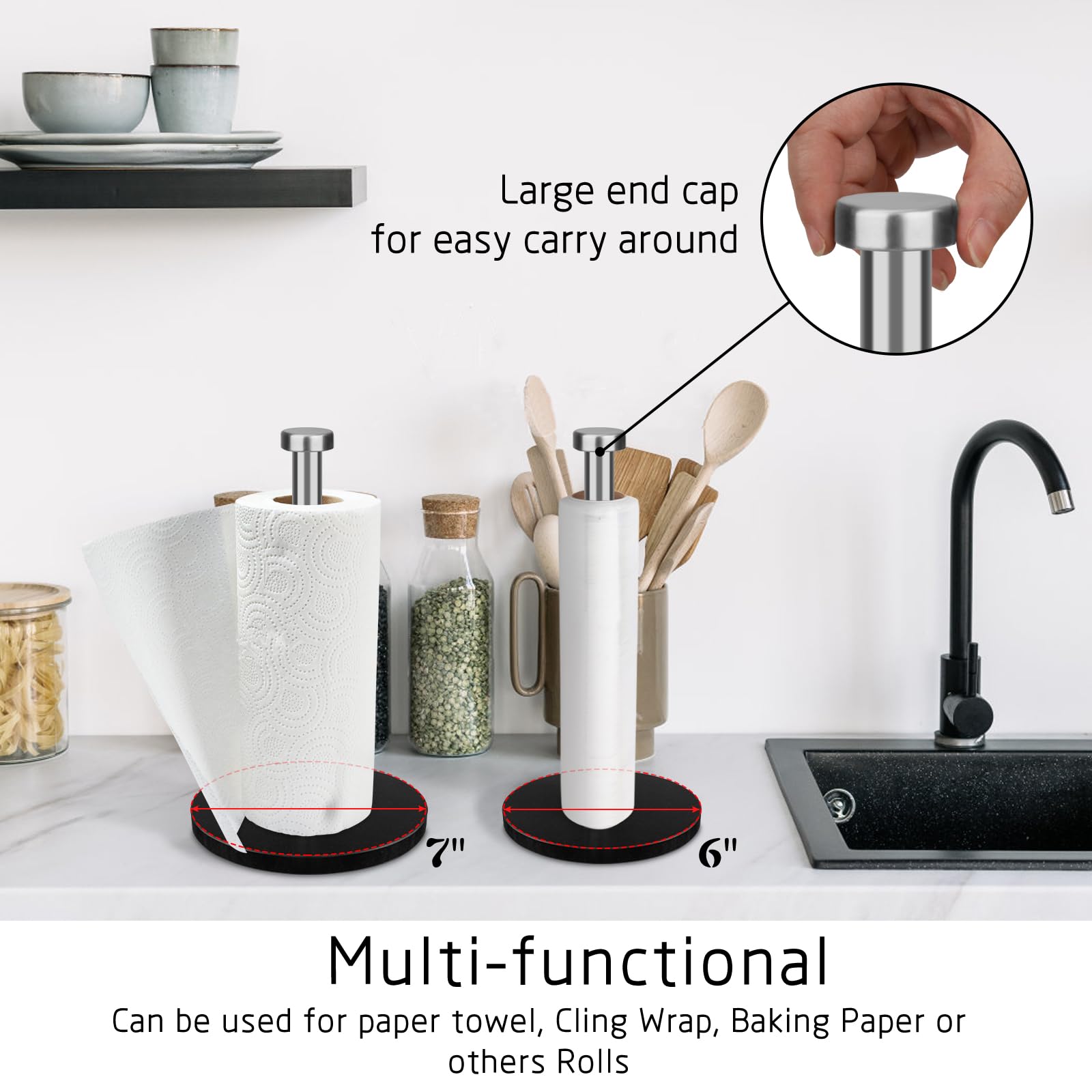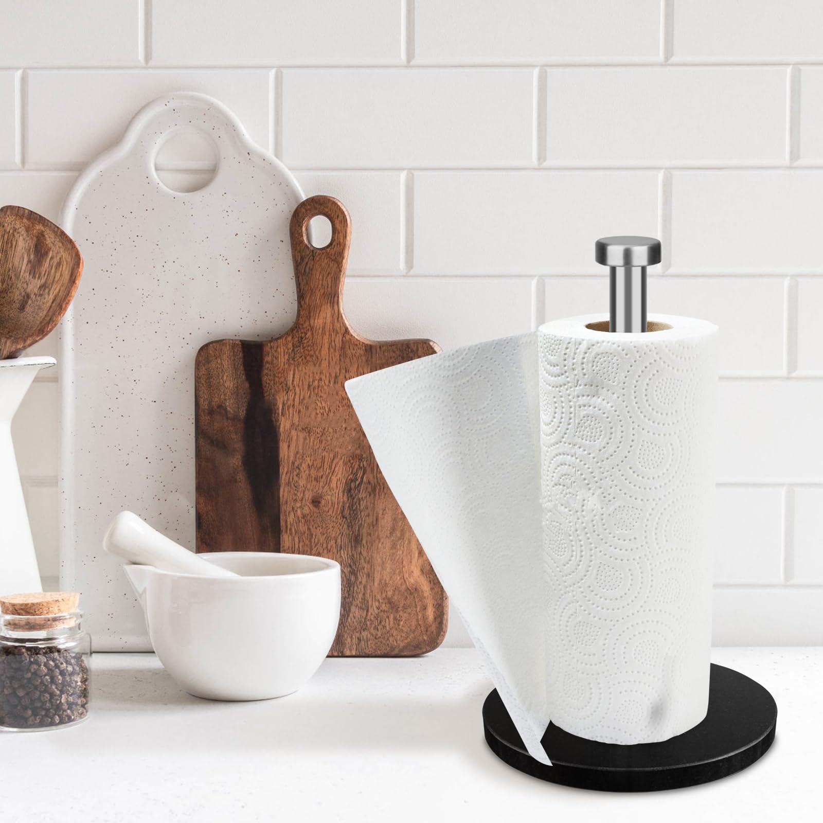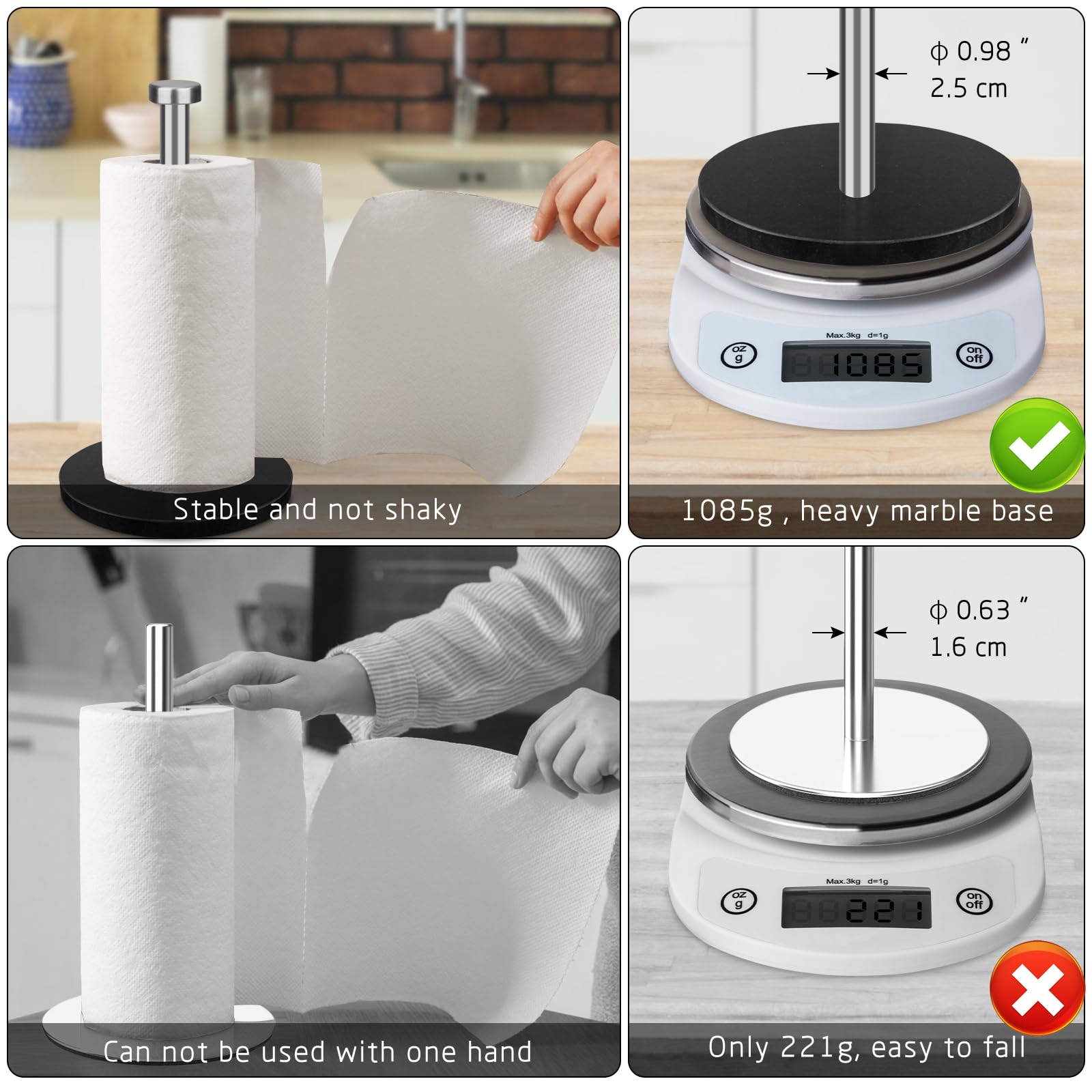 HESHIBI Paper Towel Holder Countertop with 7" Weighted Black Marble Base - Modern Free Standing Paper Roll Holder, Brushed Steel Stainless Steel Stand Paper Towel Holder for Kitchen and Bathroom