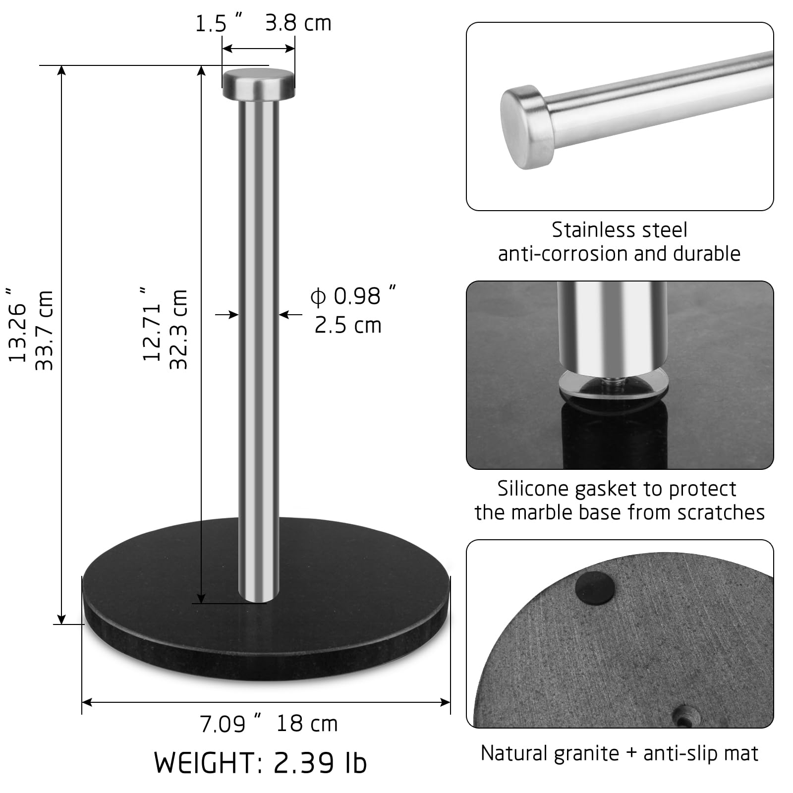 VERSATILITY: We also put 4 non-slip pads on the bottom to prevent the paper towel holder shelf from shifting. The padded bottom will keep your table from getting scratched.Our paper towel bars come in different marble bases, and different metal bars, so you can best match the style of your home.