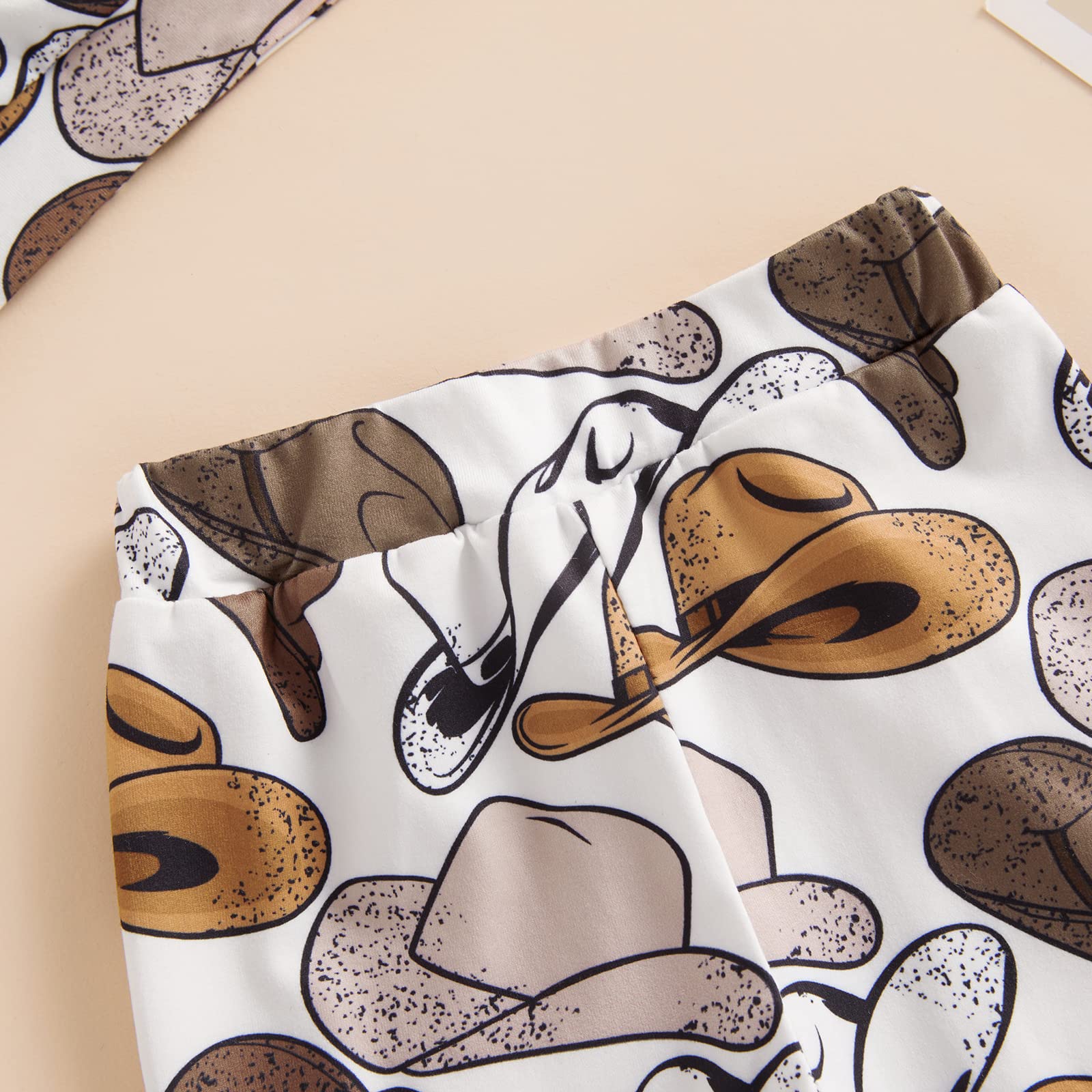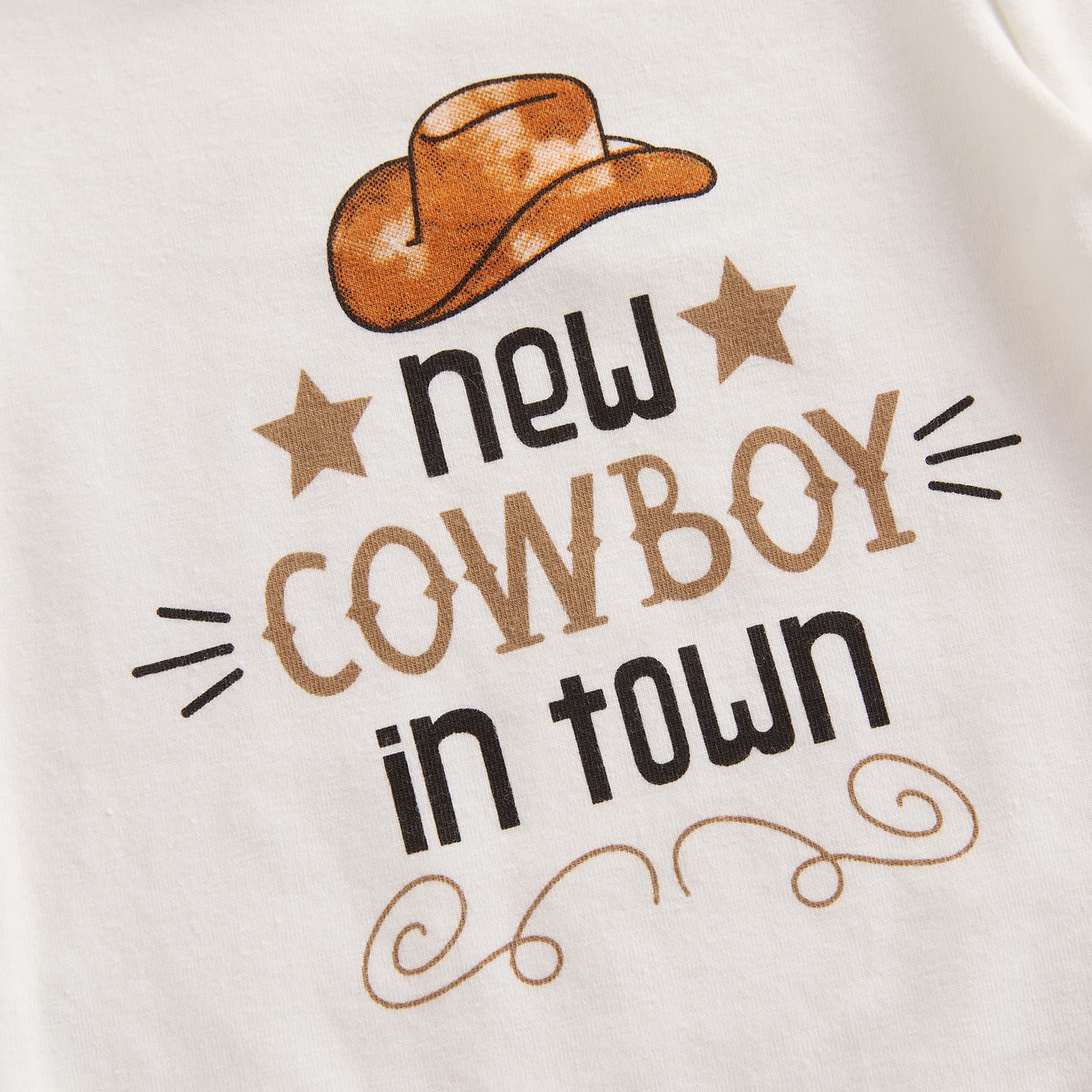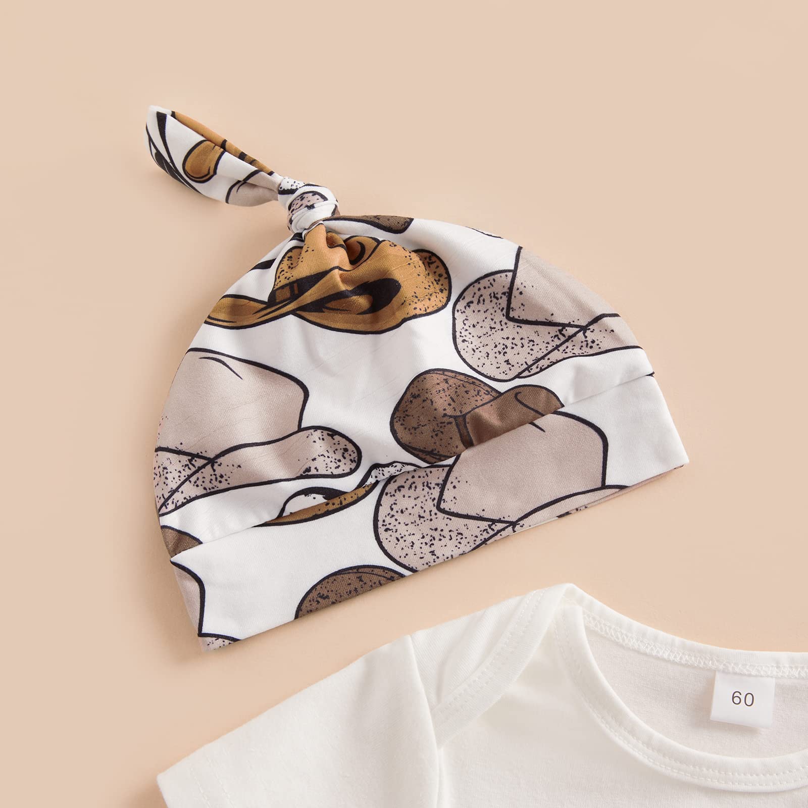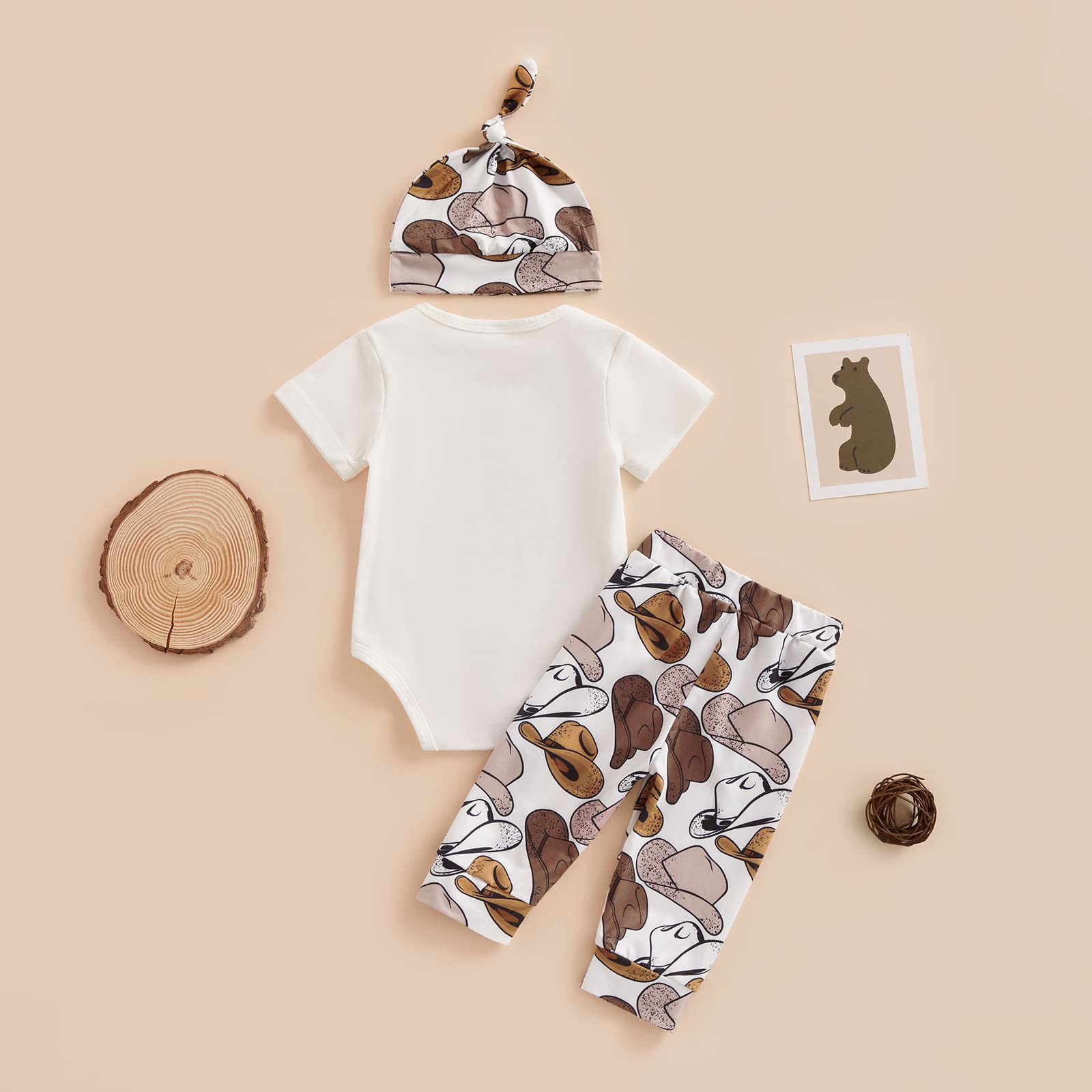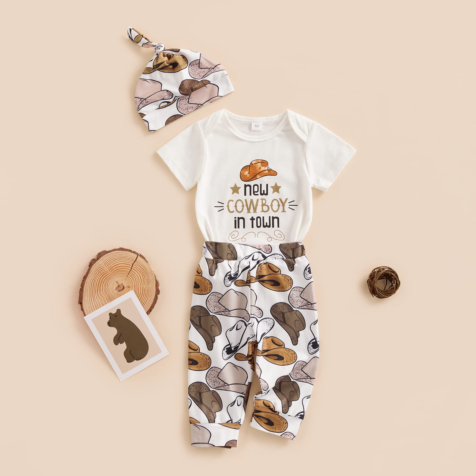 Description Western Cowboy Letter Printed Bodysuit Romper + Pants +Hats Outfits