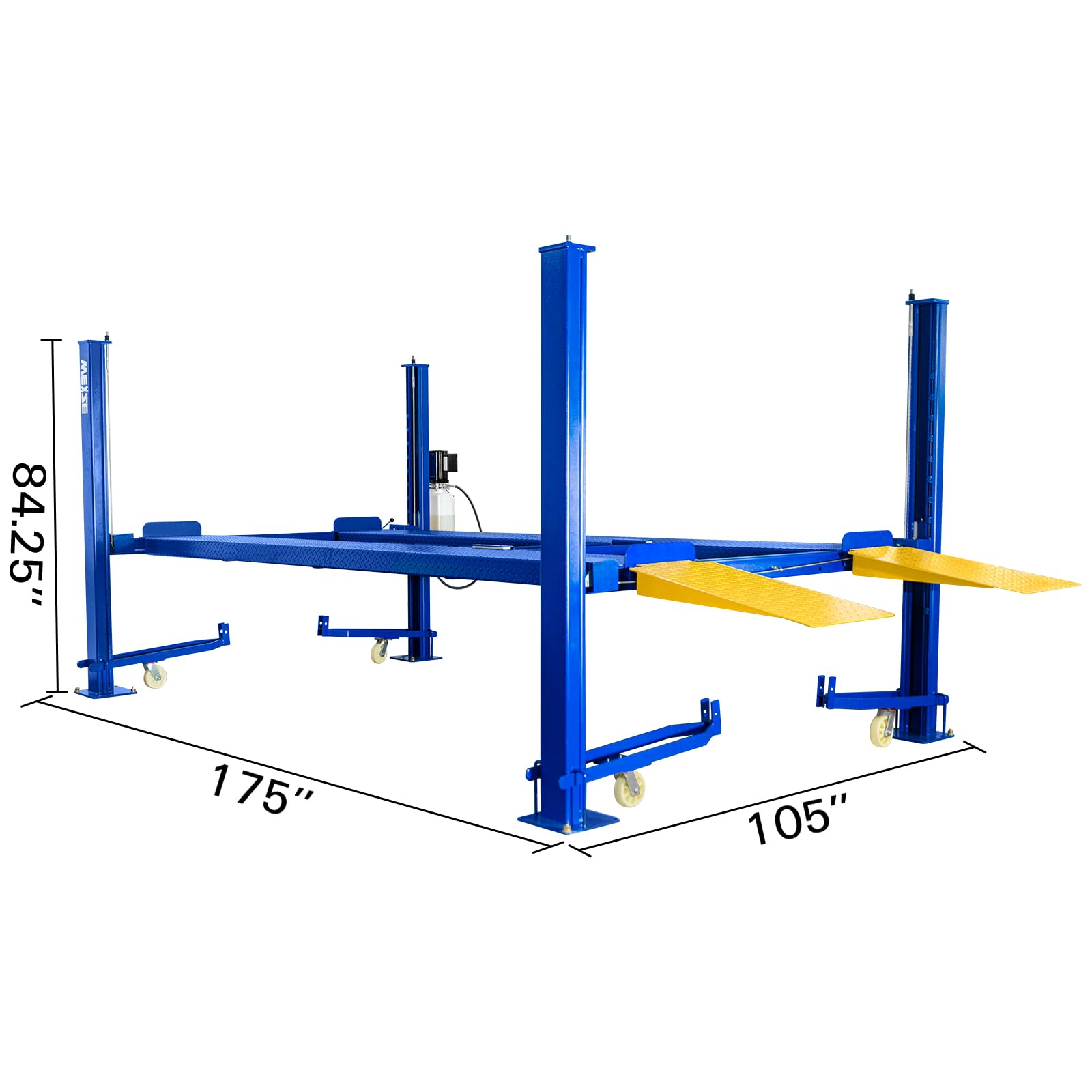 Work Faster - Full lift in a rapid 40 seconds, our 8500 lbs 4 post car lift gets your vehicle safely elevated and ready for service in under a minute, dramatically increasing your garage's productivity and turning waiting time into working time.