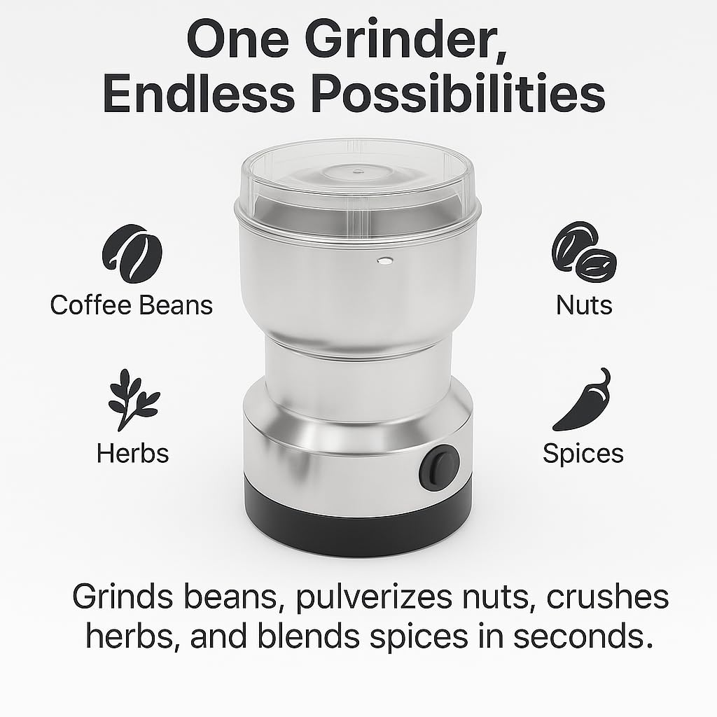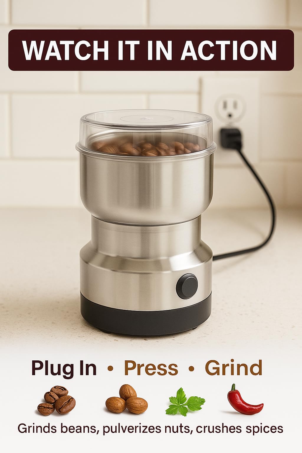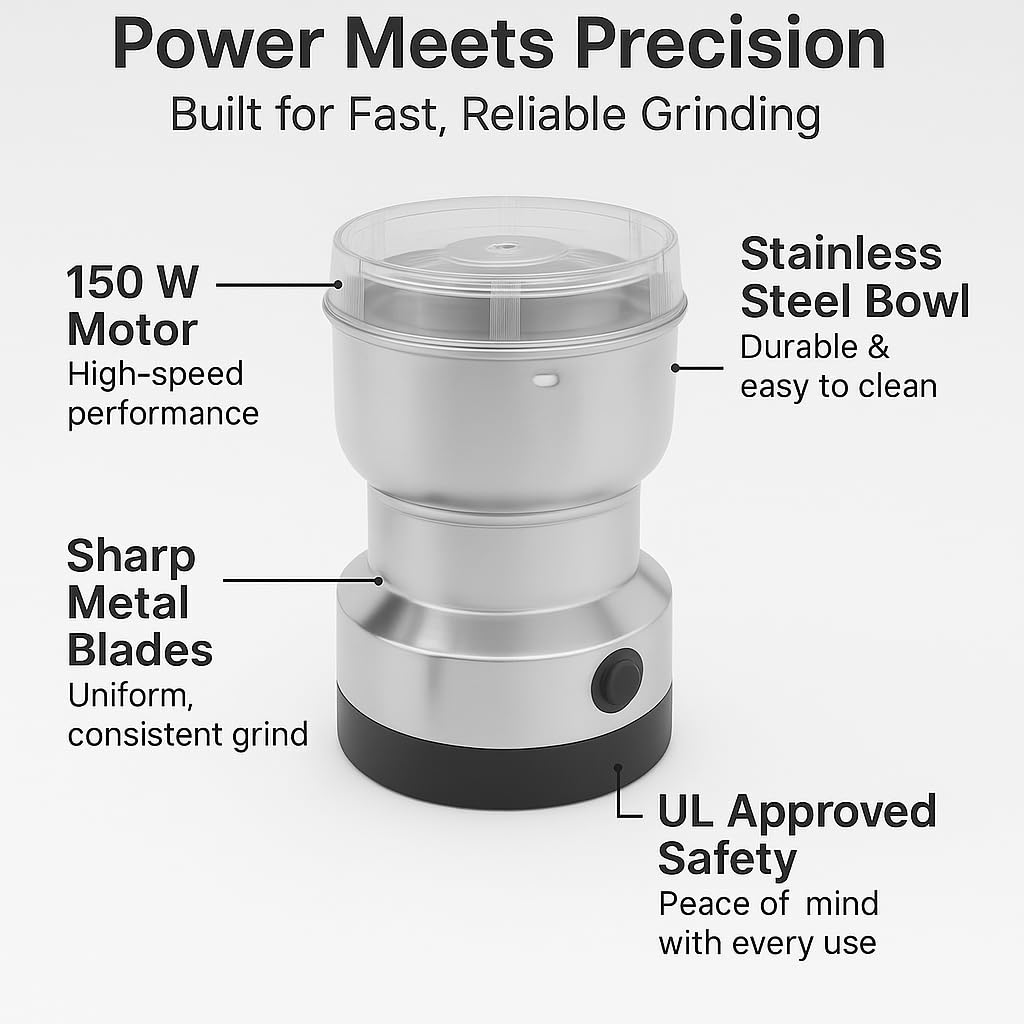 Powerful Grinding Performance: Equipped with a robust 150W motor and sharp metal blades for finely grinding coffee beans, spices, and nuts.
