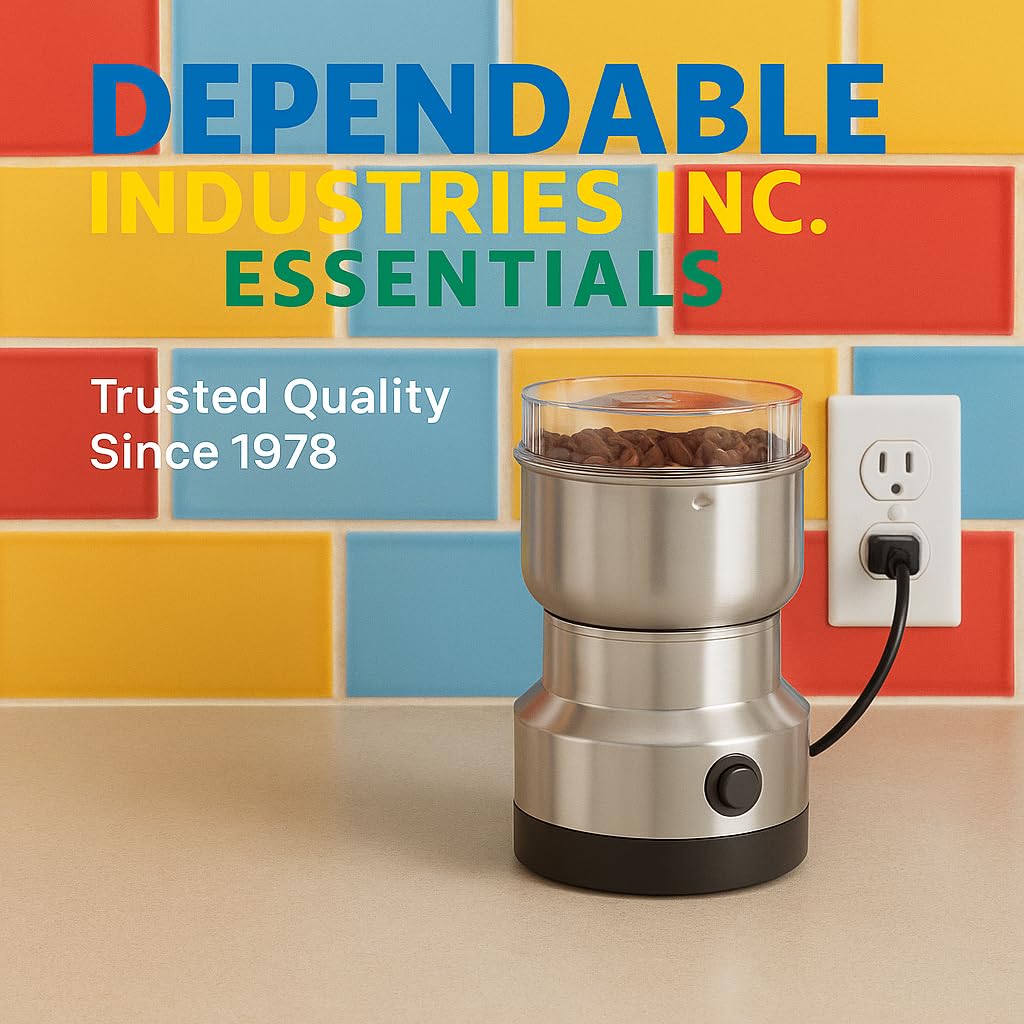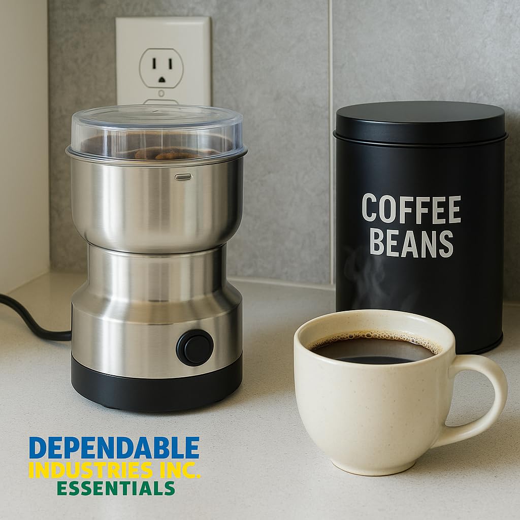Enhance your grinding experience with the Dependable Industries Inc. Essentials Electric Coffee Grinder, ideal for coffee beans, spices, and nuts. This 150W powerhouse features a stainless steel bowl with sharp metal blades, ensuring consistent and precise grinding every time. UL approved for safety and powered by a 14,500 RPM motor, it delivers excellent results in seconds. Designed for simplicity, it features an easy one-push button operation—press to start and release to stop. The compact size fits comfortably on any countertop, while the locking lid ensures safe use. With a 100-gram capacity, it’s perfect for everyday kitchen use or small office setups. Cleaning is effortless: simply wipe the stainless steel bowl with a damp cloth. Whether you’re brewing fresh coffee or creating custom spice blends, this reliable grinder brings performance and convenience together in one dependable tool.