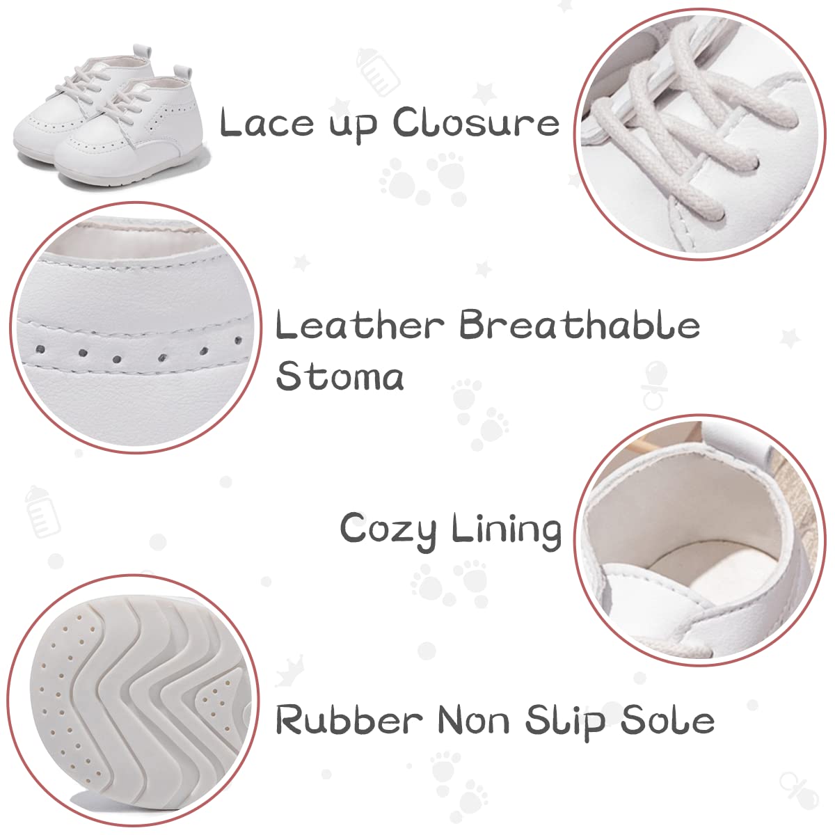 Easy Wear & Non-Slip: Soft and non-slip sole good for baby’s feet to learning walking, help him have some grip when standing or walking. Lace-up closure can adjust tightness to suit babies with different foot shapes. Easy on and off for your child