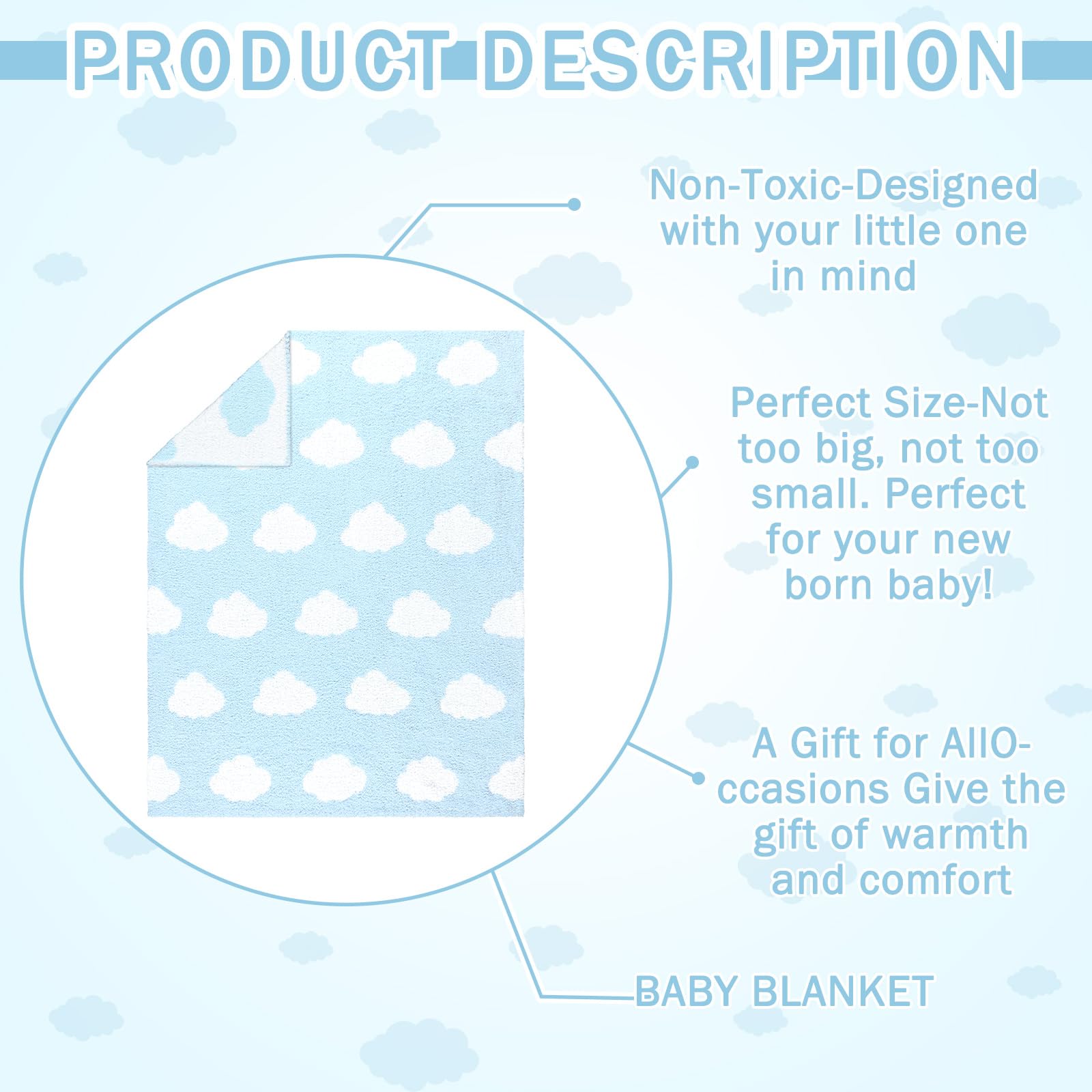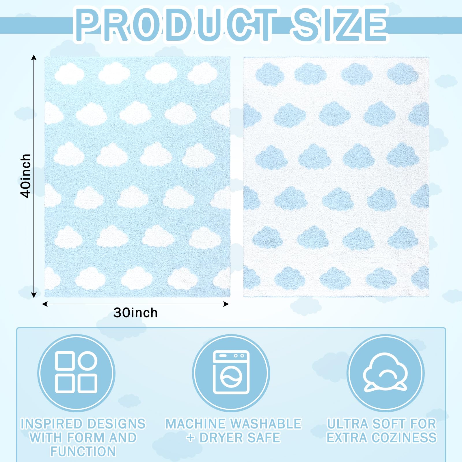 Suitable Size: the size of our soft blanket is 30×40 feet, the blanket is suitable size for watching TV or taking a nap, it will provide nice coverage to your body; Its right size and delicate cloud design make it a nice blue blanket for women, while ensuring optimal warmth and relaxation