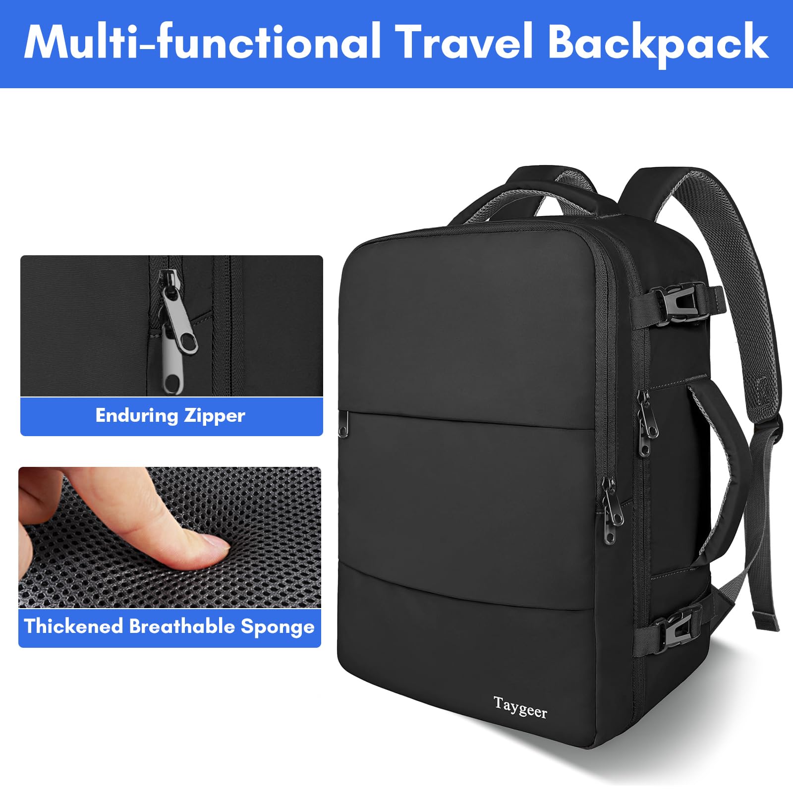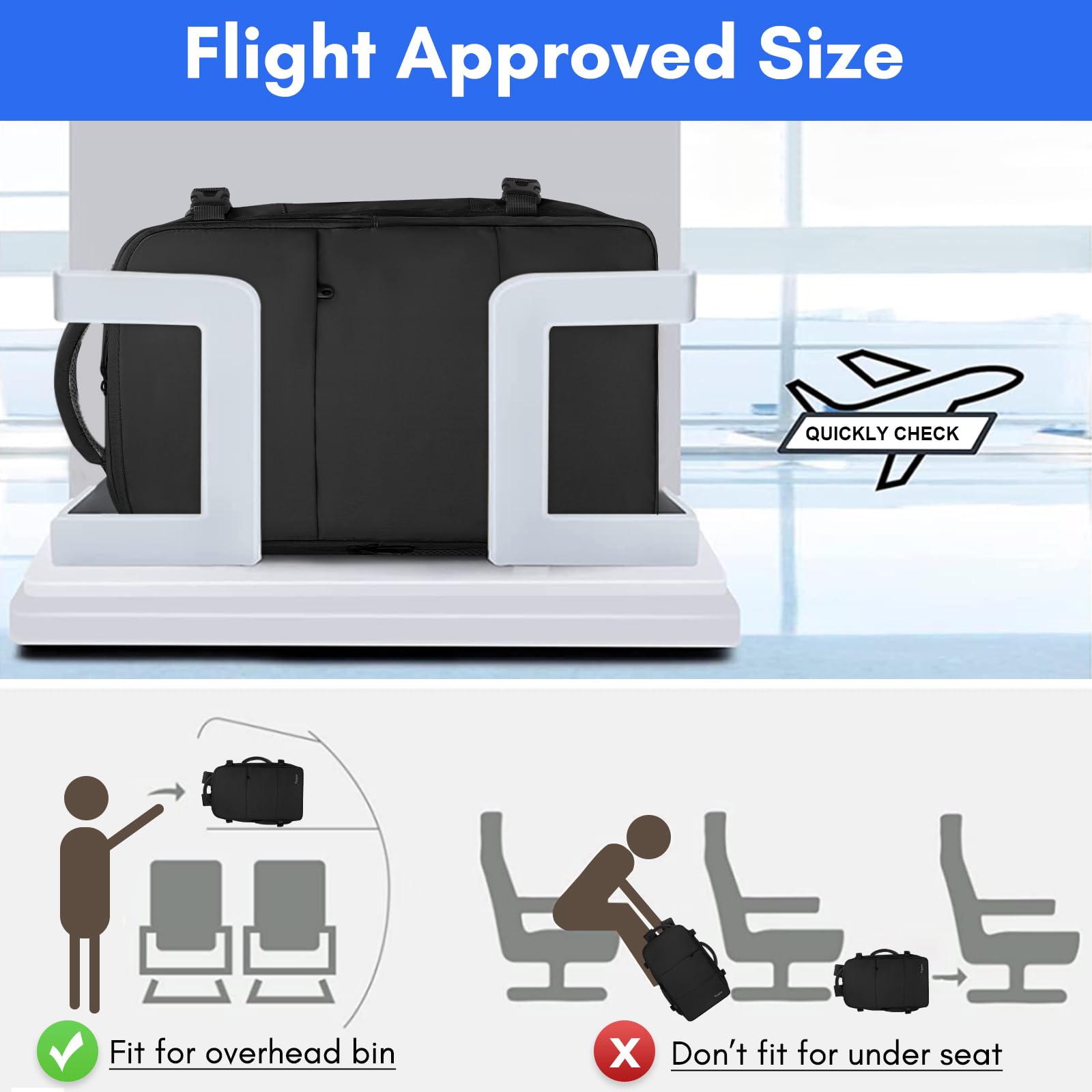 Be Handbag or Backpack: The mens travel backpack for airplane designed with padded adjustable shoulder strapsand 2 padded handles make it easy to transform this weekender backpack from hand bag to backpack. Luggage Strap provides a more flexible carrying experience. Two padded grab handles are set on top and side of the personal item travel backpack. Note: when used as a handbag, you can thread the shoulder strap through the luggage strap for convenience