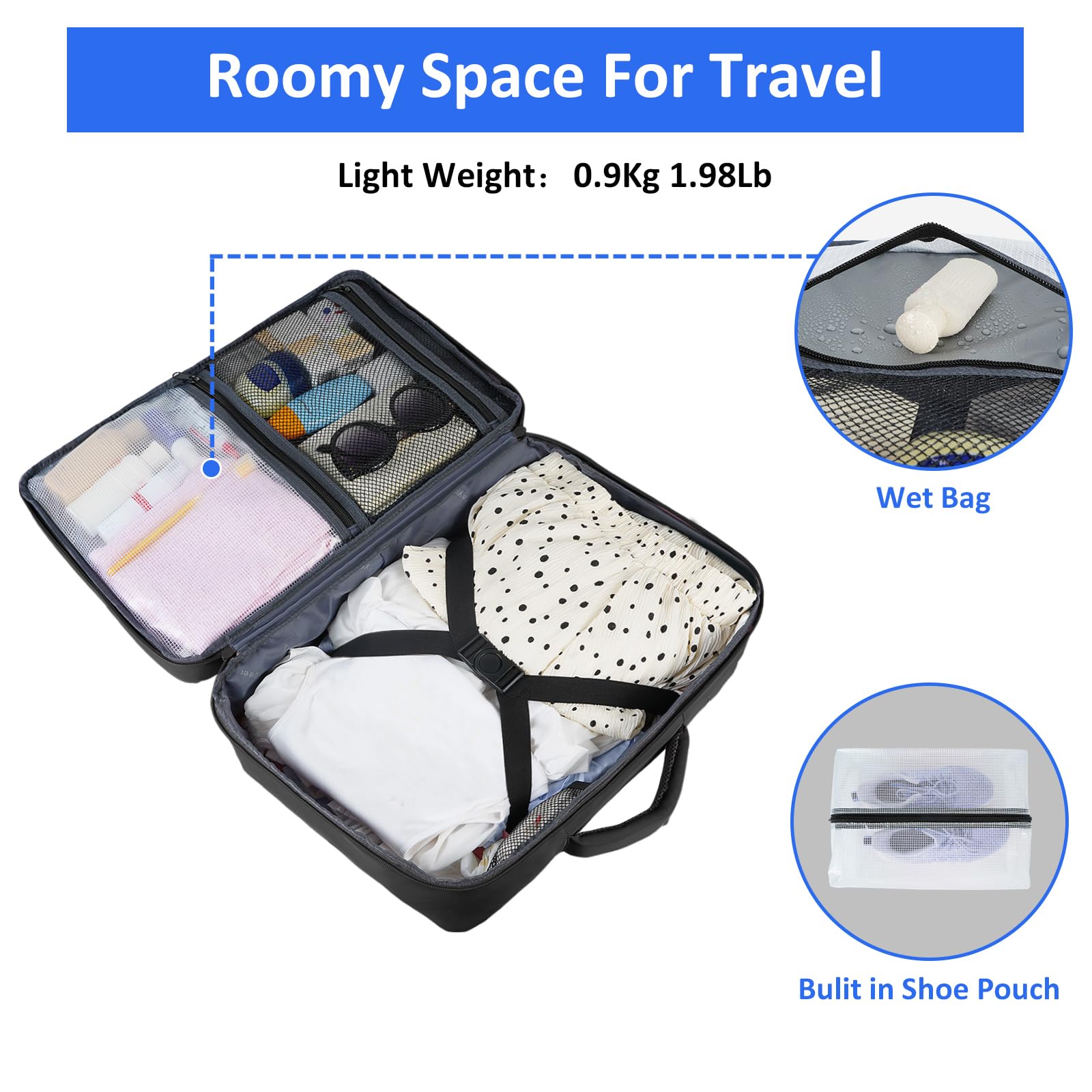 Extra Shoe Bag & Wet Pocket: Large carry on backpack for men women includes a bonus shoe bag to keep shoes separate from clothes and prevent dirt from spreading in your bag. The wet pocket of suitcase backpack for travel is ideal for storing swimsuits, toiletries, helping keep the rest of your items dry. The thoughtful design makes the travel bag laptop backpack for men women perfect for travel, everyday use
