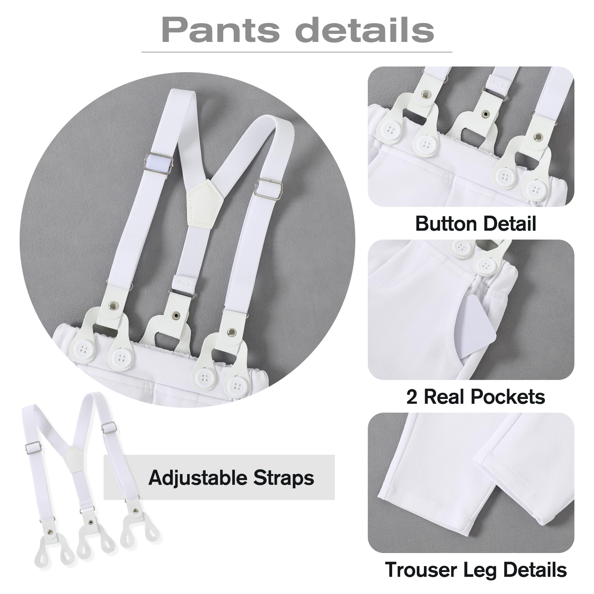 Fashion Suit: A fashionable baby boy suspenders outfit that is easy to wear and exercise, making your little boy look elegant and gentlemanly. You can remove the straps to create a casual look