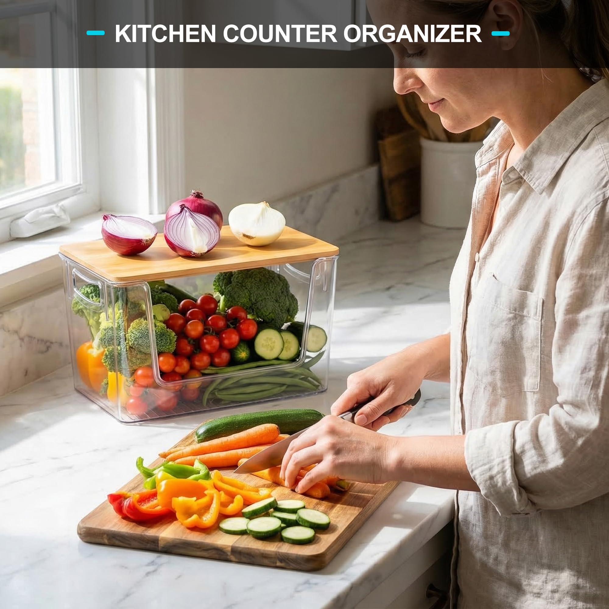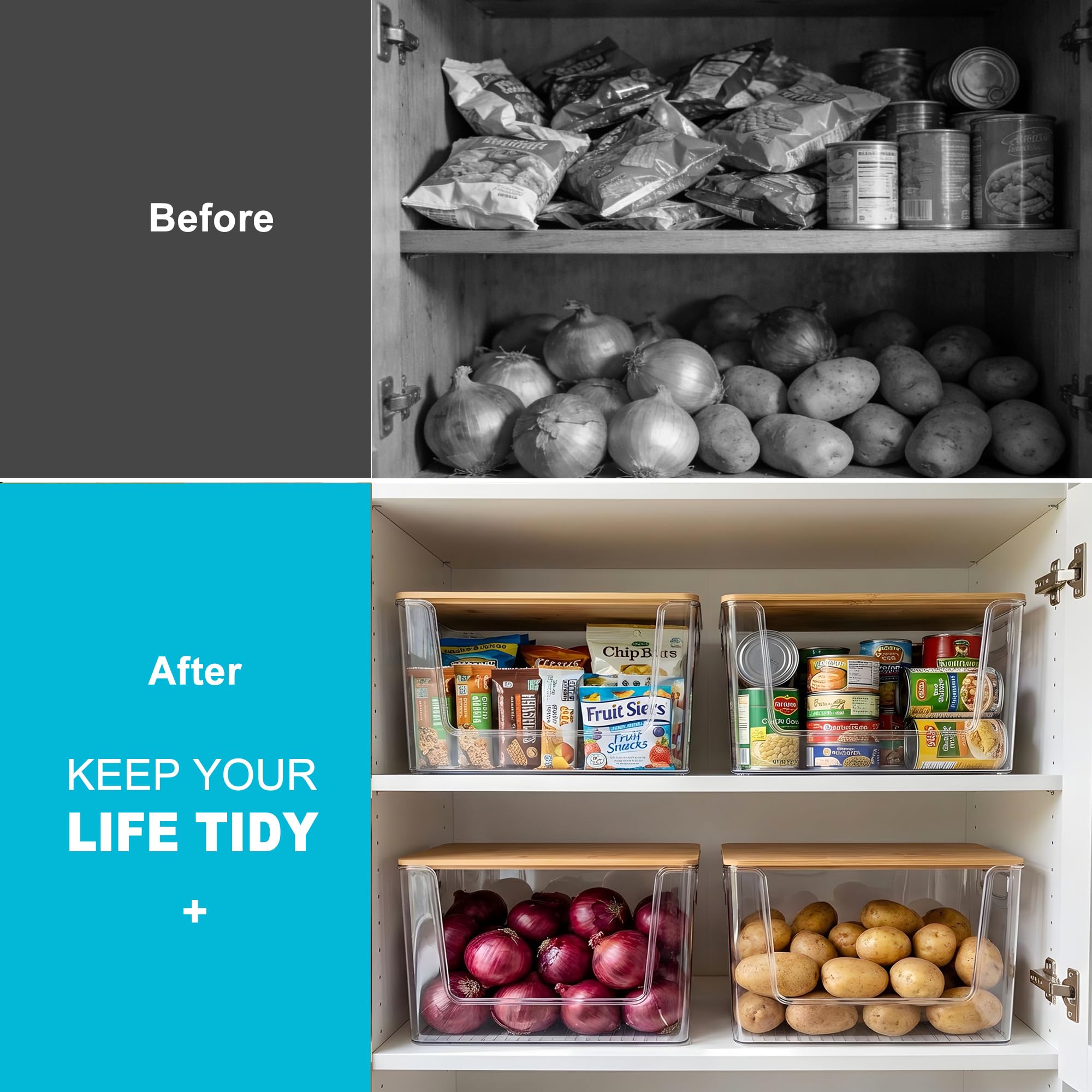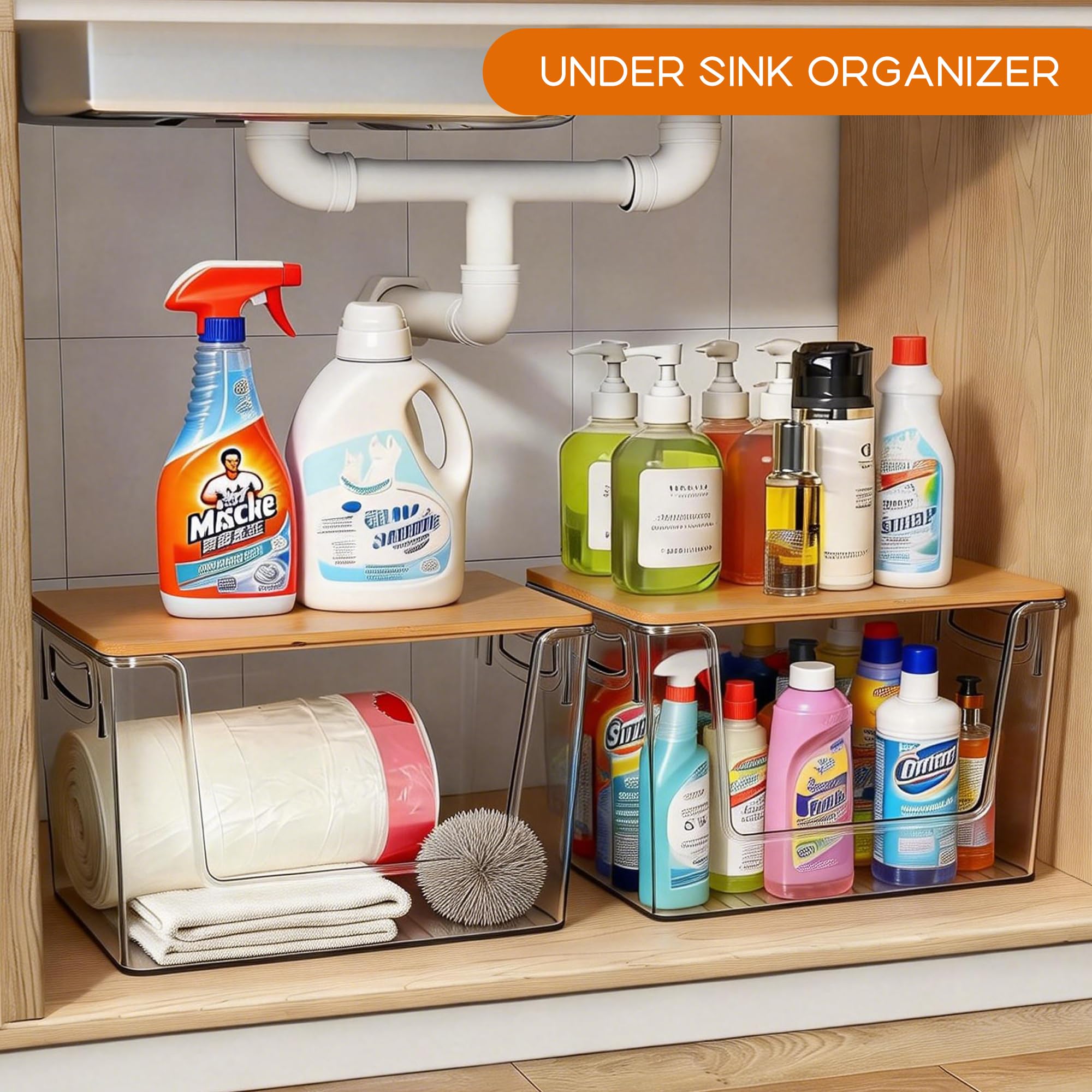 Multipurpose Bins: This clear storage organizer allows it to fit on any countertop, shelf, or cabinet. It is a space-saving solution for smaller kitchens and pantries cabinet. Suitable for storing cleaning supplies, toiletries, kitchen essentials, skincare items, and more in kitchens, bathrooms, laundry rooms, or any space that needs organization