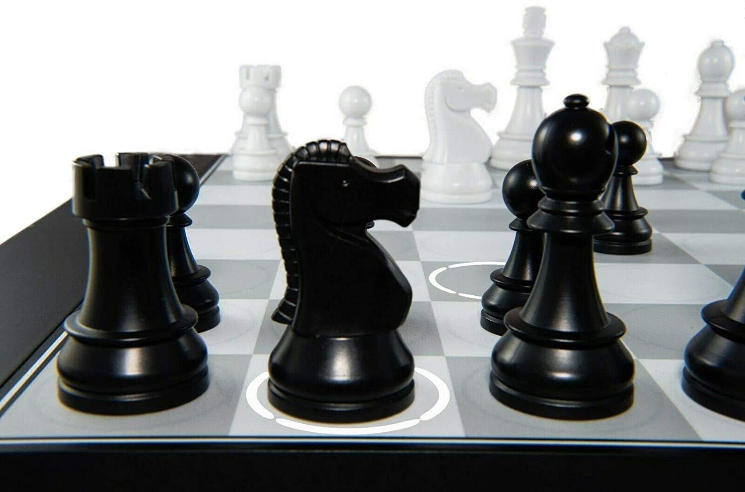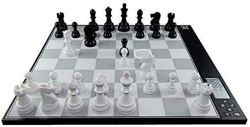 Adaptive level chess computer is a beautiful chess board that adjusts to your level of play - a suitable playing partner at all times! There's no need for computer screens or tablets. Just start playing chess naturally with intelligent auto-sensing technology. Impressive looking weighted pieces and on board lighted display within the squares themselves engage you in a fully contained, highly-tactical chess play experience that you will enjoy for hours upon hours. The e-Paper display has nice smooth contrast which is not only easy on the eyes, it lets you view the screen at any angle and in any lighting. On this display you can see previous moves in a move-list, view hints, the score, clock, and various settings. Many other chess computers are designed to play at top strength, thereby failing to provide an optimal realistic experience at lower levels. That's where this computer is specifically made to excel. Whether you're a beginner, strong player, home or club player, It will adjust to your level as you play. This means you'll always see a challenging game that is both educational and fun! About the produt: adapts to your strength sensor board detects moves on-square LED lights indicates the moves rechargeable internal battery weighted chess pieces e-Paper display of position, moves and info hint system, position setup, and more many languages 6 months Warranty included No advanced chess computer knowledge is required. Just use it to play, learn, train, analyze and improve
