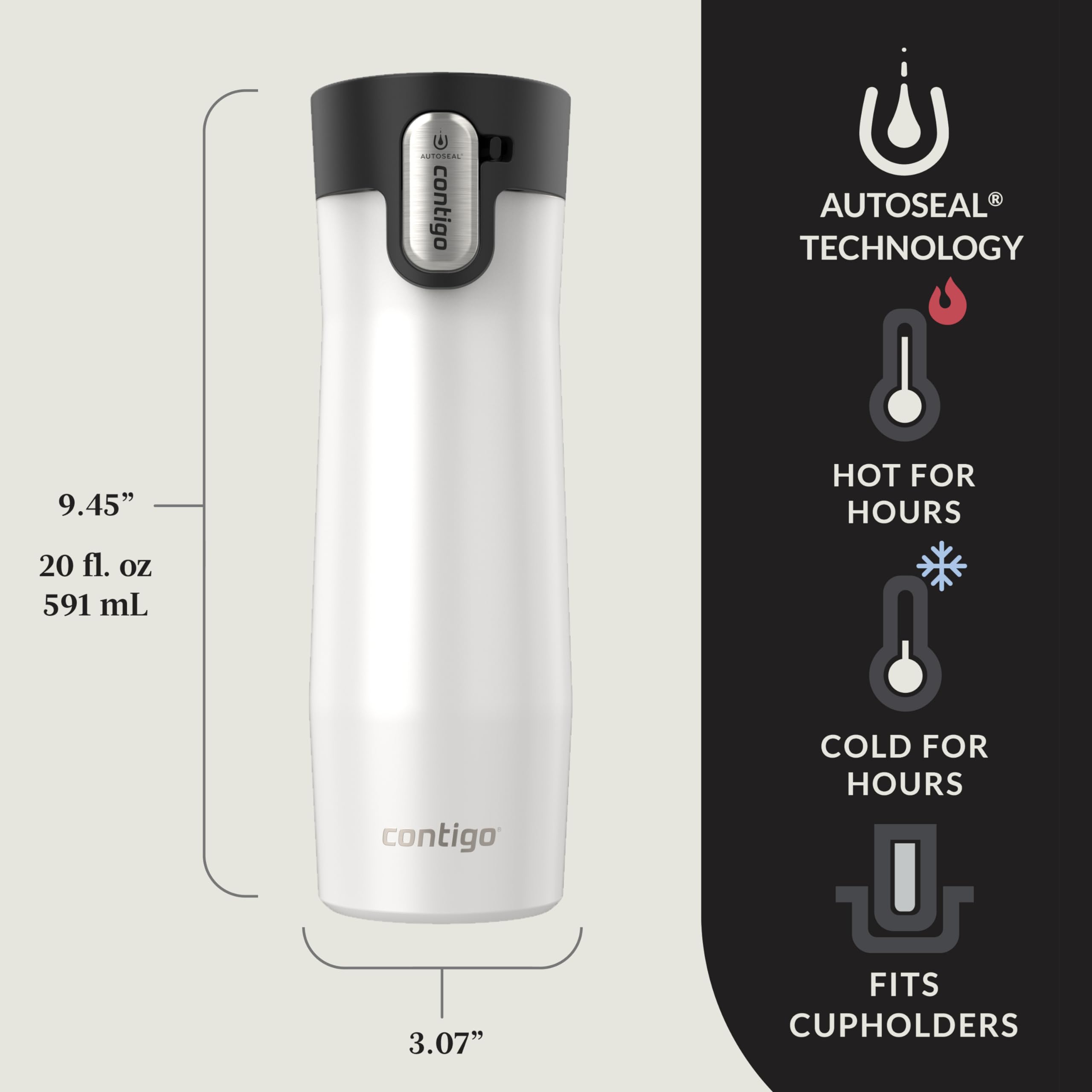 There's a commuter, traveler, and urban explorer in everyone. The Contigo AUTOSEAL® West Loop Vacuum-Insulated Stainless Steel Travel Mug with Easy-Clean Lid, 12 oz, is made with every journey in mind. The ultimate in on-the-go convenience, this thermal coffee mug is leak- and spill-proof thanks to AUTOSEAL® technology. Press a button to drink, then release to seal after every sip. THERMALOCK vacuum insulation keeps liquids piping hot up to 13 hours or icy cold up to 28. The Easy-Clean Lid pops open completely when you’re done drinking, letting you get into all the nooks and crannies for thorough cleaning. The innovative lid is also one piece, so there are no parts to misplace when you toss it on the top rack of your dishwasher. Stainless steel bodies are hand-wash only.