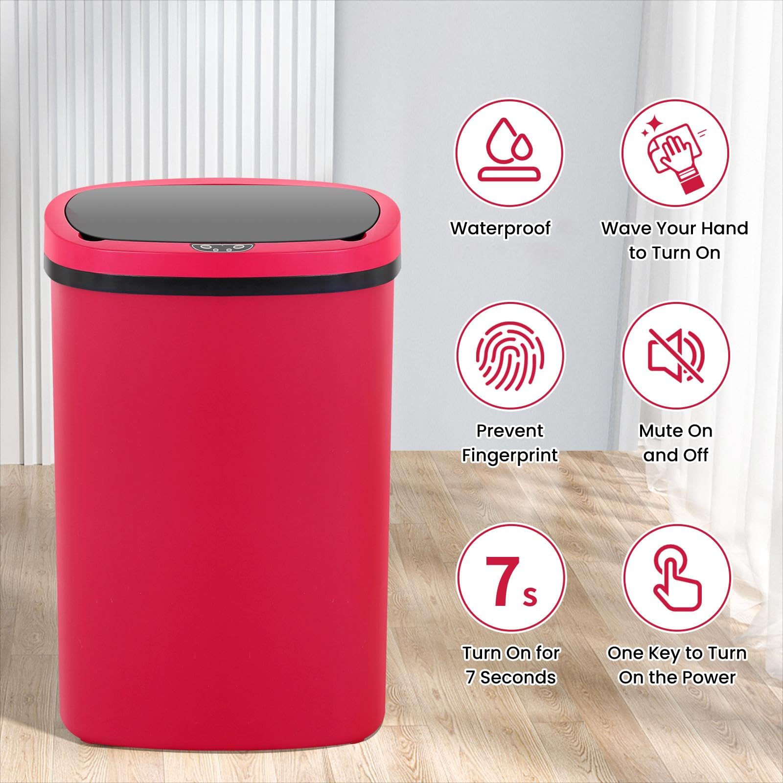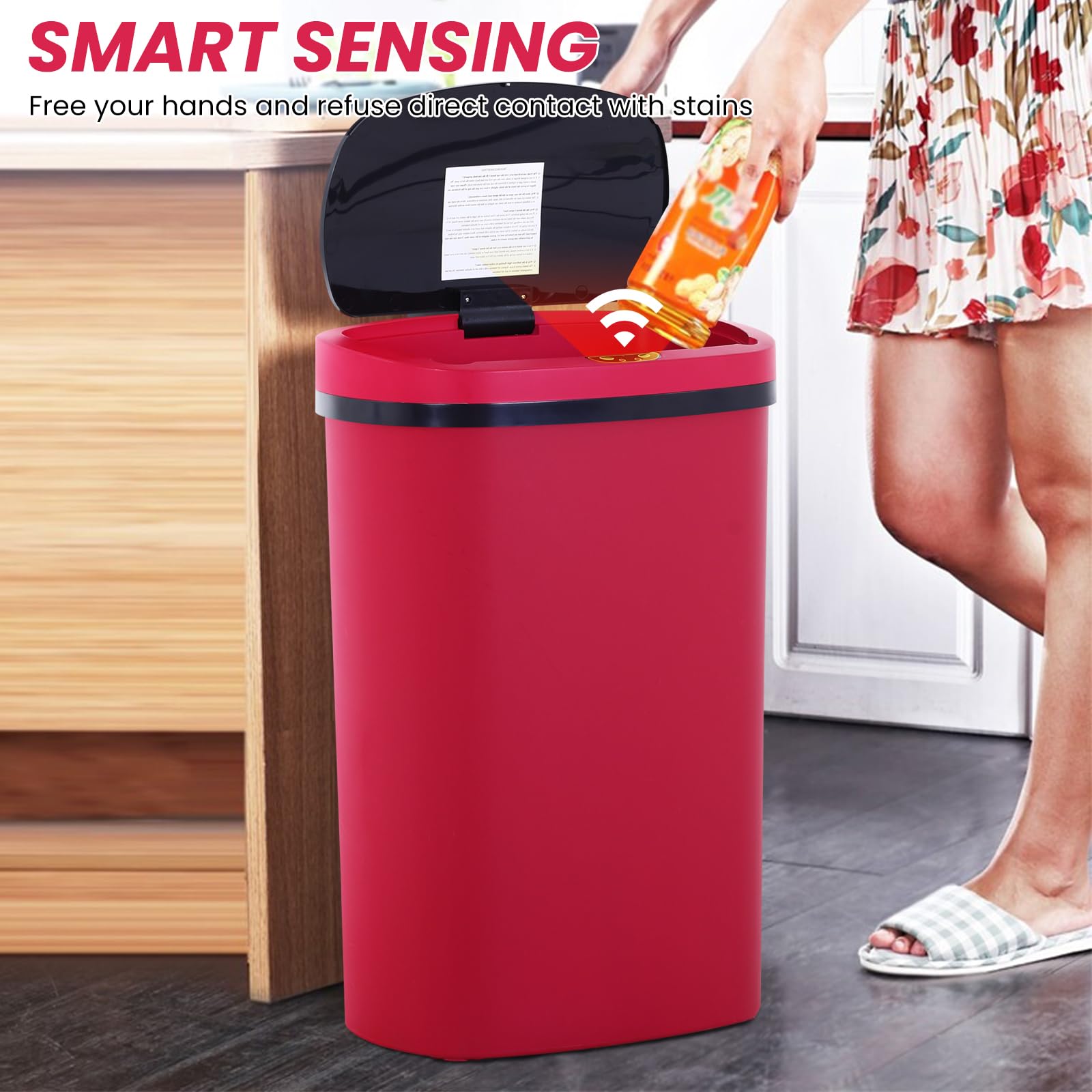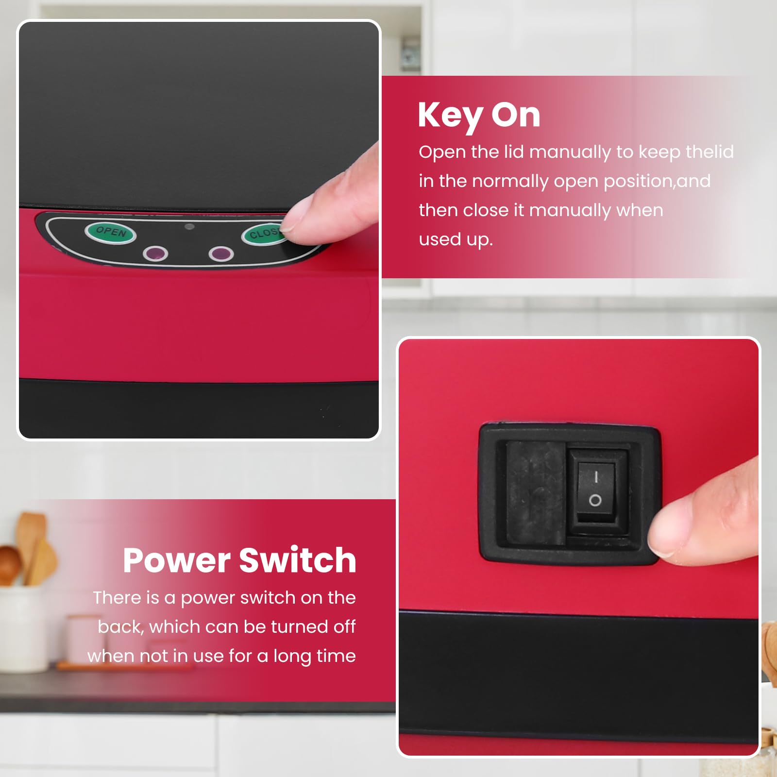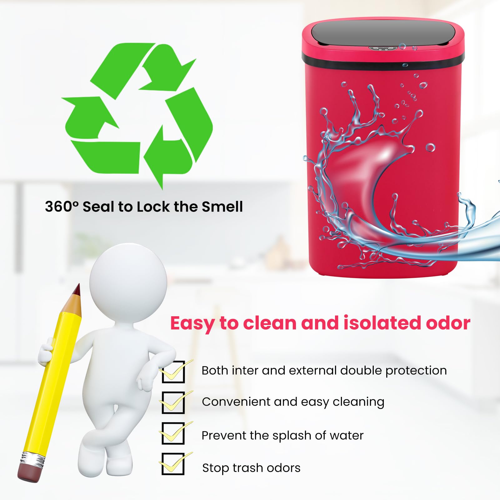 -- No Touch, More Hygienic: -- This automatic trash can is designed to be very user-friendly, you can throw the trash into the can without touching it, very clean and hygienic. This garbage can has an infrared sensor. You can trigger the sensor to open the lid by the proximity range of 6" of the sensor. The response time is about 0.8S. When the lid is opened, it will open for 7S and then close