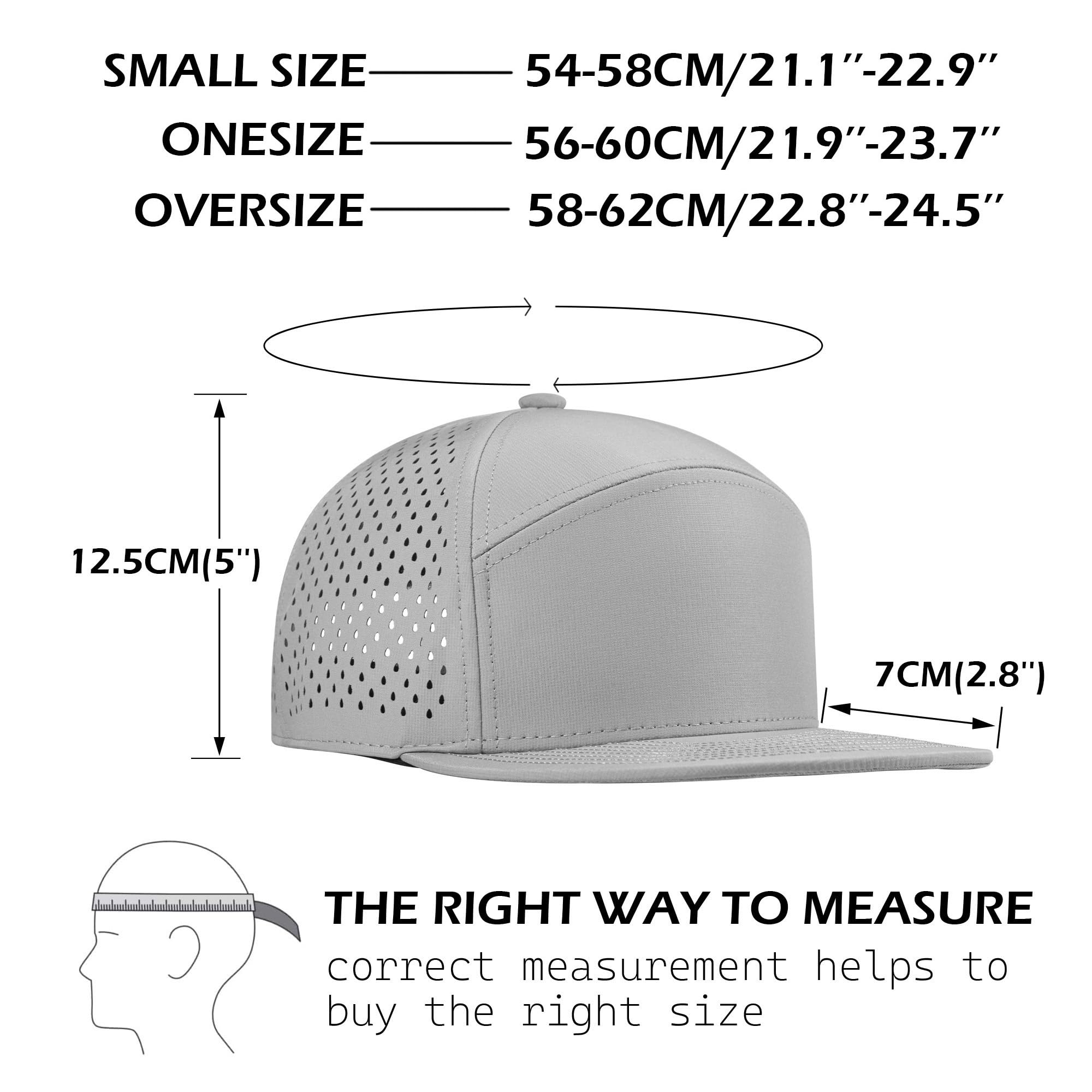 Varpepe Hat Design: Stylish and functional,structured front panels that maintains shape, 6-panel, flat brim, laser-perforated side & rear panels for breathability, and soft touch adjustable snapback closure