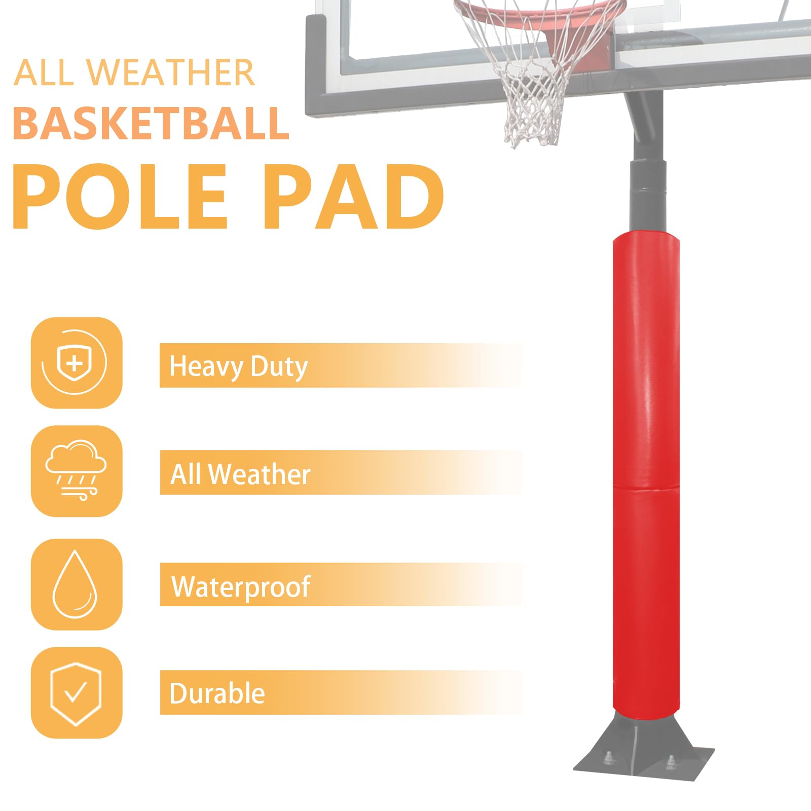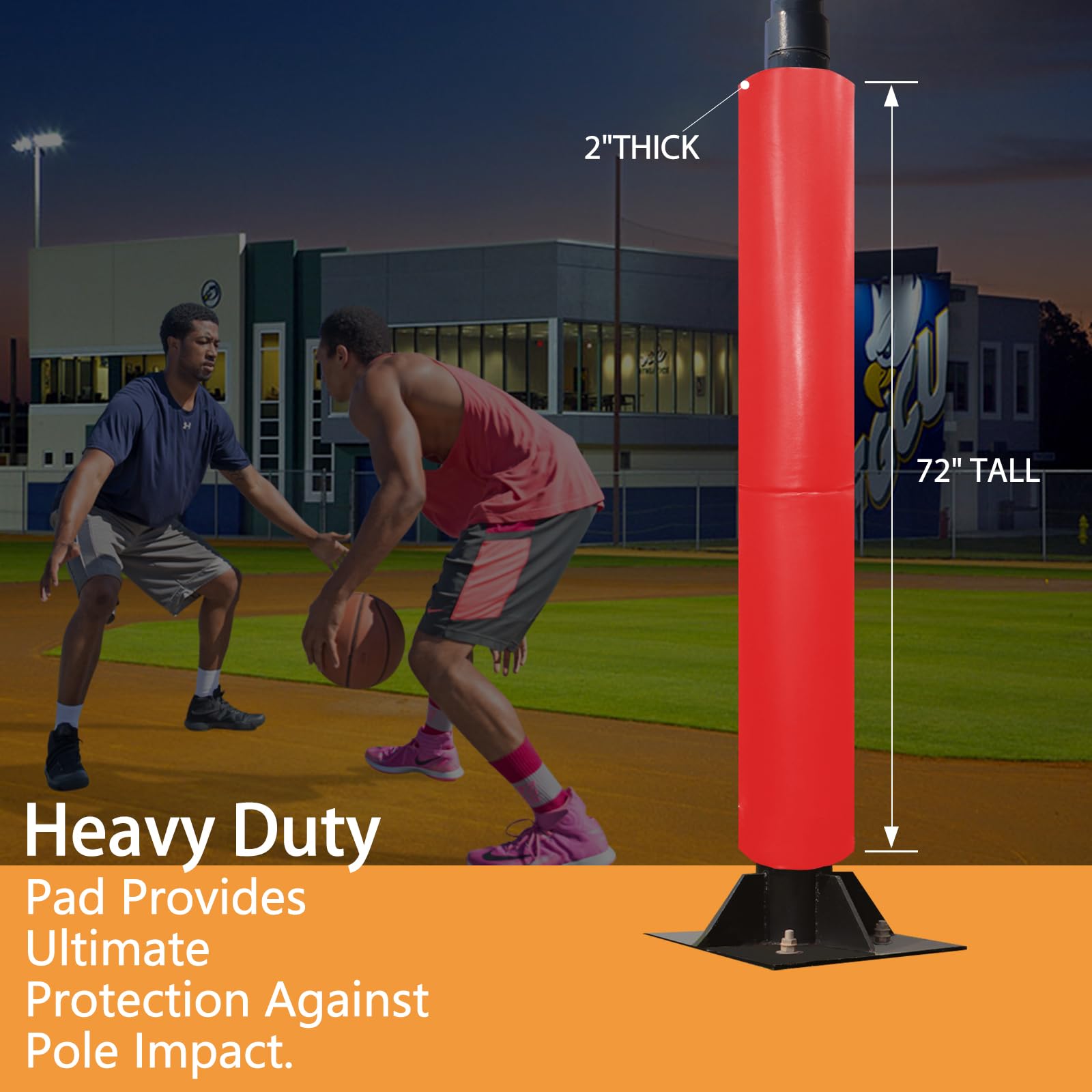 PLAYER PROTECTION — Basketball pole pad provides protection and safety for players during aggressive, rough play.