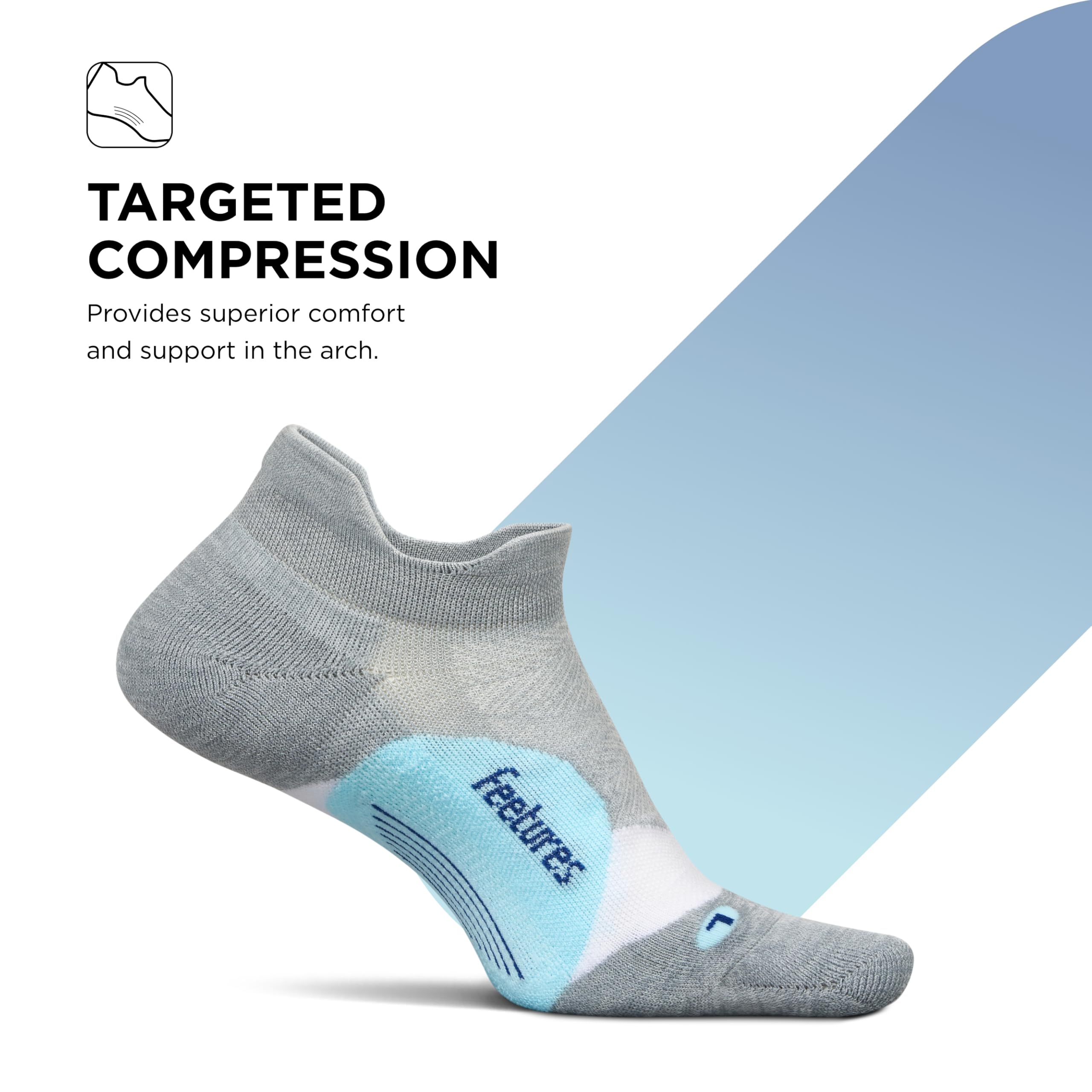 Sports Sock: These Feetures socks are engineered with Targeted Compression and anatomical design that conform to the left and right structure of the foot providing a custom-like fit and reduced risk of blisters