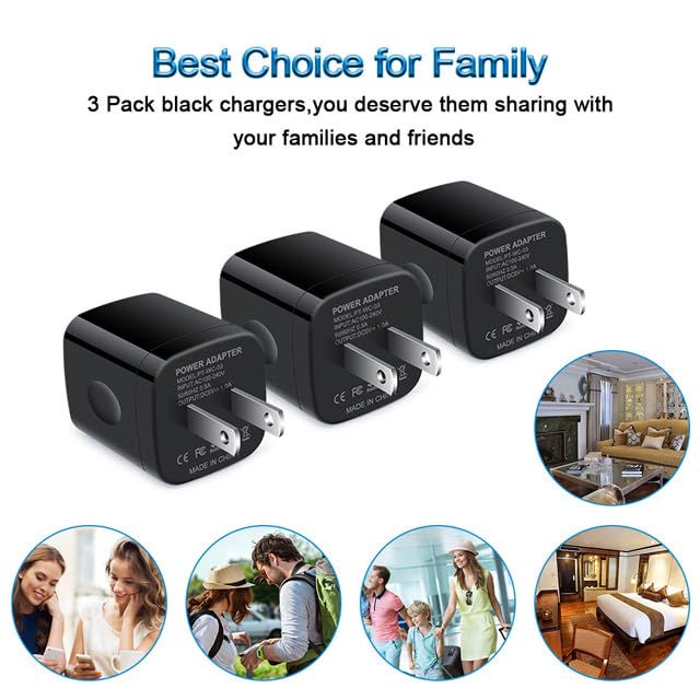 【Compact USB Wall Plug】: Charging Phone Block size: 3.2*3.2 cm. Every weight is 25g. It's lightweight, Compact and easily portable. 3 Pack Chargers. You can place one in your office, one at home, and one on your car, or you can also share with your family and friends.