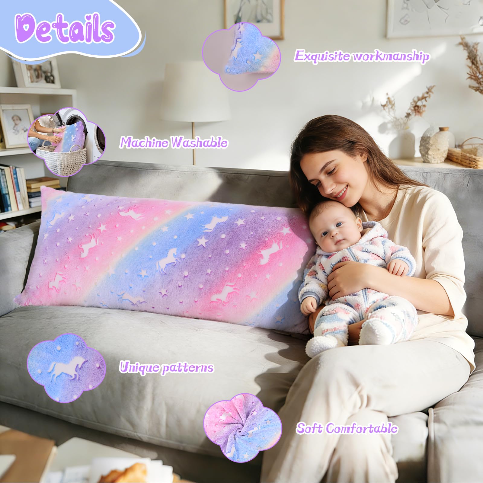 【WASHING INSTRUCTIONS】This body pillow case cover is machine washable. Just use gentle cycle with cold water, tumble dry low or air dry in shade to maintain its softness and glow effect. A hassle-free choice that keeps your child’s favorite decorative body pillow clean and fresh with minimal effort!