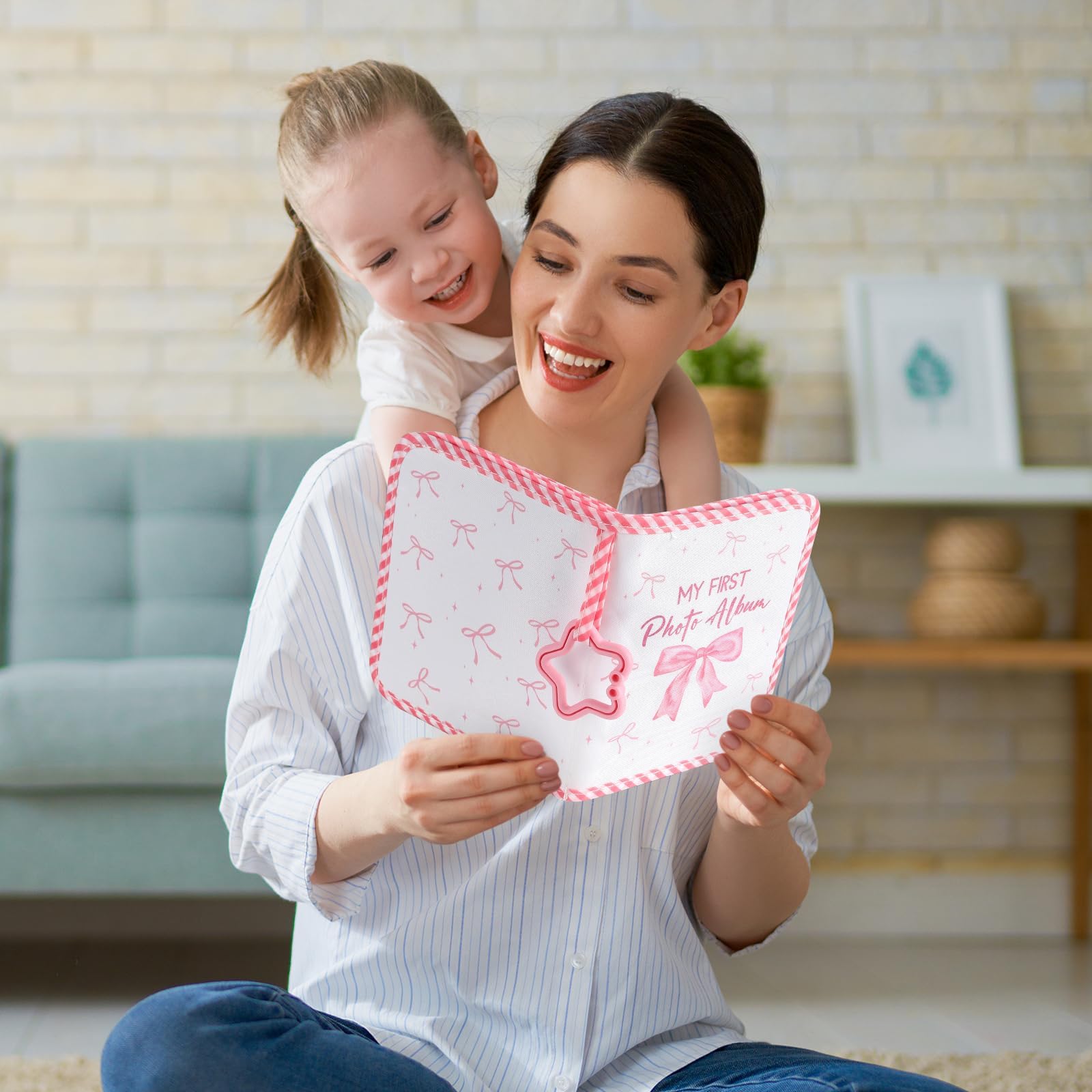 Capture your baby's important moments: Our pink bow photo album book is ideal for capturing all the important moments and highlights of your baby's life, preserving and documenting their growth. It can also stimulate their imagination and curiosity and enhance their memory through photos.