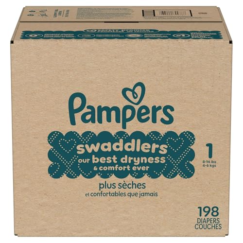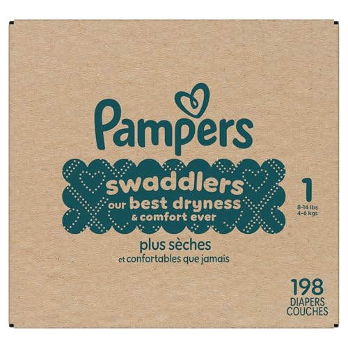 Wrap your baby in our best dryness and comfort ever. Try Pampers Swaddlers. These Pampers disposable diapers are designed with a KeepDry Liner and irresistible pillowy softness to keep your baby dry and comfortable from their very first days and beyond. Plus, they’re drier than the Luxury Diaper for all-night comfort. Pampers Swaddlers are dermatologist tested, hypoallergenic, and free of elemental chlorine, parabens, and latex** to protect babies’ sensitive skin. Pampers Swaddlers surround your baby with up to 100% blowout and leak protection, thanks to their absorbent core and All-Around LeakGuard with Blowout Barrier. Trusted by pediatricians and parents alike, Pampers Swaddlers are from the Most Awarded Diaper Brand ^, the #1 pediatrician recommended brand^^, Best of Babylist winner, and the #1 choice of parents^^^. Pampers has been providing products that prioritize comfort, safety, and effectiveness for over 60 years. Earn savings while you shop with Pampers Rewards. Every 10 scans = $10 off. Scan. Earn. Repeat. Use them with Pampers Sensitive Baby Wipes for healthy skin. Pampers Swaddlers are available in preemie diapers, newborn diapers, and size 1 through size 8. To find your baby’s ideal fit, just measure by weight and reference our available baby diaper sizes. Pampers preemie diapers (up to 4 lbs.), newborn diapers (up to 10 lbs.), size 1 diapers (8–14 lbs.), size 2 diapers (10–22 lbs.), size 3 diapers (13-26 lbs.), size 4 diapers (15–34 lbs.), size 5 diapers (20-37 lbs.), size 6 diapers (23-34 lbs.), size 7 diapers (26-50 lbs.), size 8 diapers (30+ lbs.). *Based on S4 Luxury Diaper Brand. 3 typical wettings of 75mL **No natural rubber. ^ Based on Awards Given 2021-2025 ^^ Based on 2024 survey of U.S. and Canadian pediatricians. ^^^ Based on Nielsen dollar sales L52W