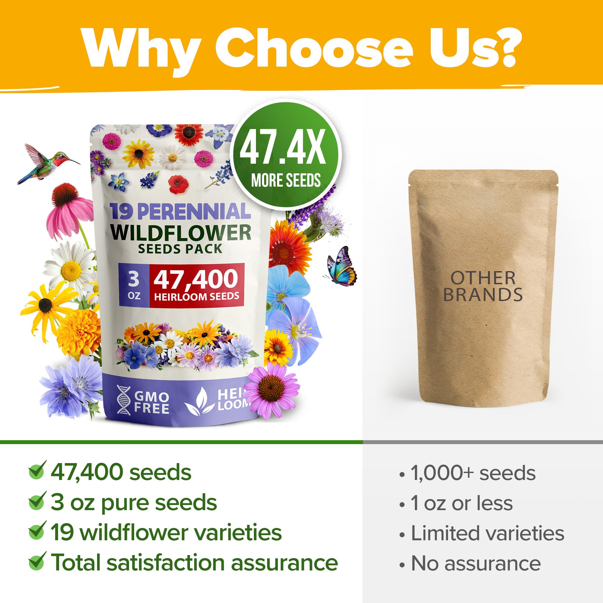 BULK VALUE PACKAGE: Contains 47,400+ seeds (3oz) of wild flowers seeds mix; Perfect for creating meadows, butterfly gardens, or cottage-style beds; Economical bulk wildflower seeds for large and small projects; Non-GMO seed mix for natural growth