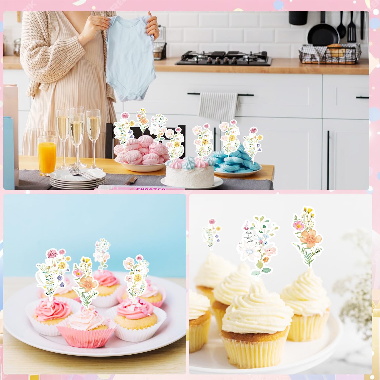 Wide Application: This cake decoration is suitable for wildflower party decorations, flower birthday parties, girls birthday parties, wildflower baby baptisms, Baby in Bloom baby baptisms, etc., making your party food look more exquisite.