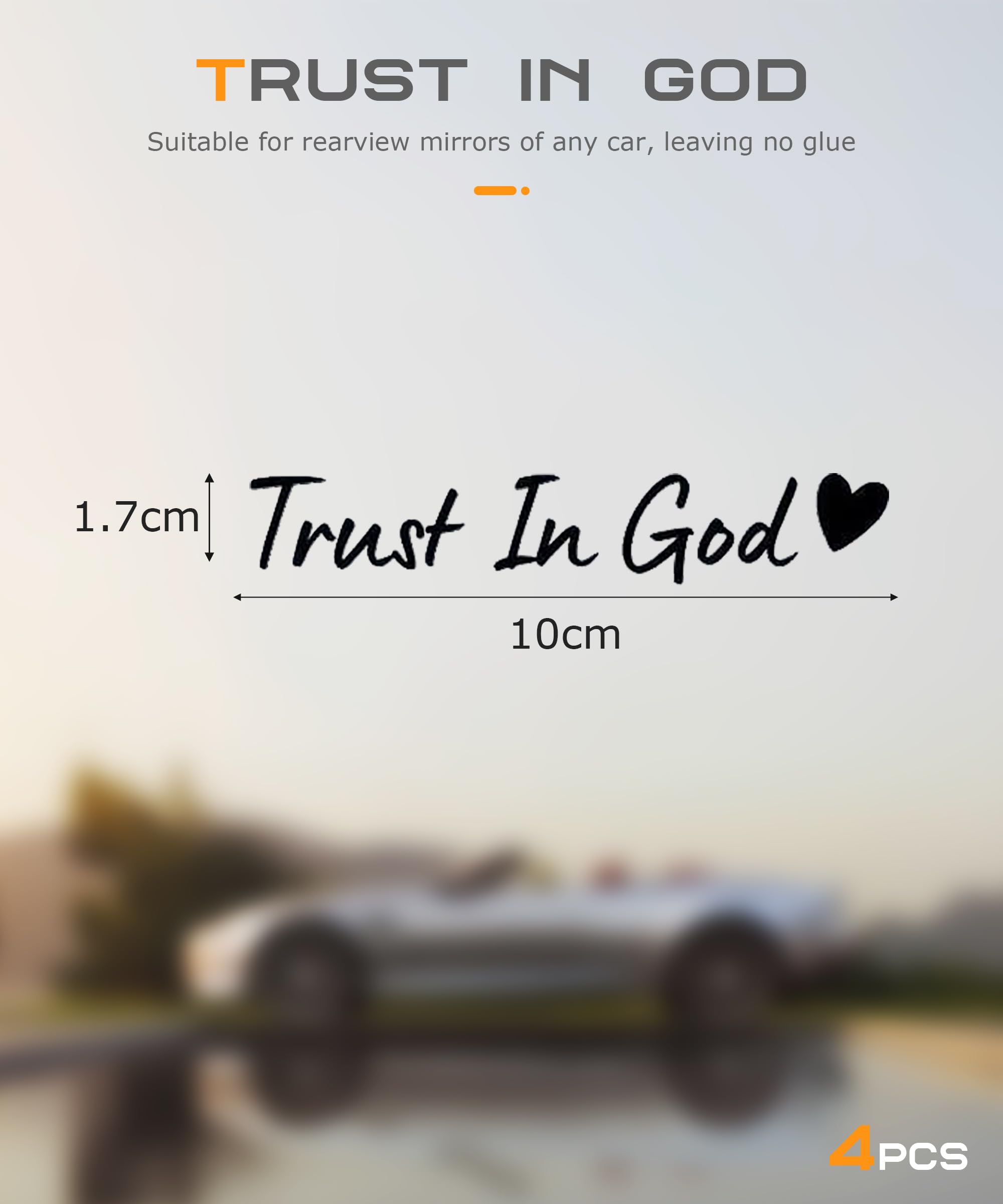 [Package Contents]: You will receive 4 pieces of "Trust in God" car rearview mirror stickers. The information is elegantly presented in clear fonts, which will attract attention on any surface, giving your car a stylish and personalized look.
