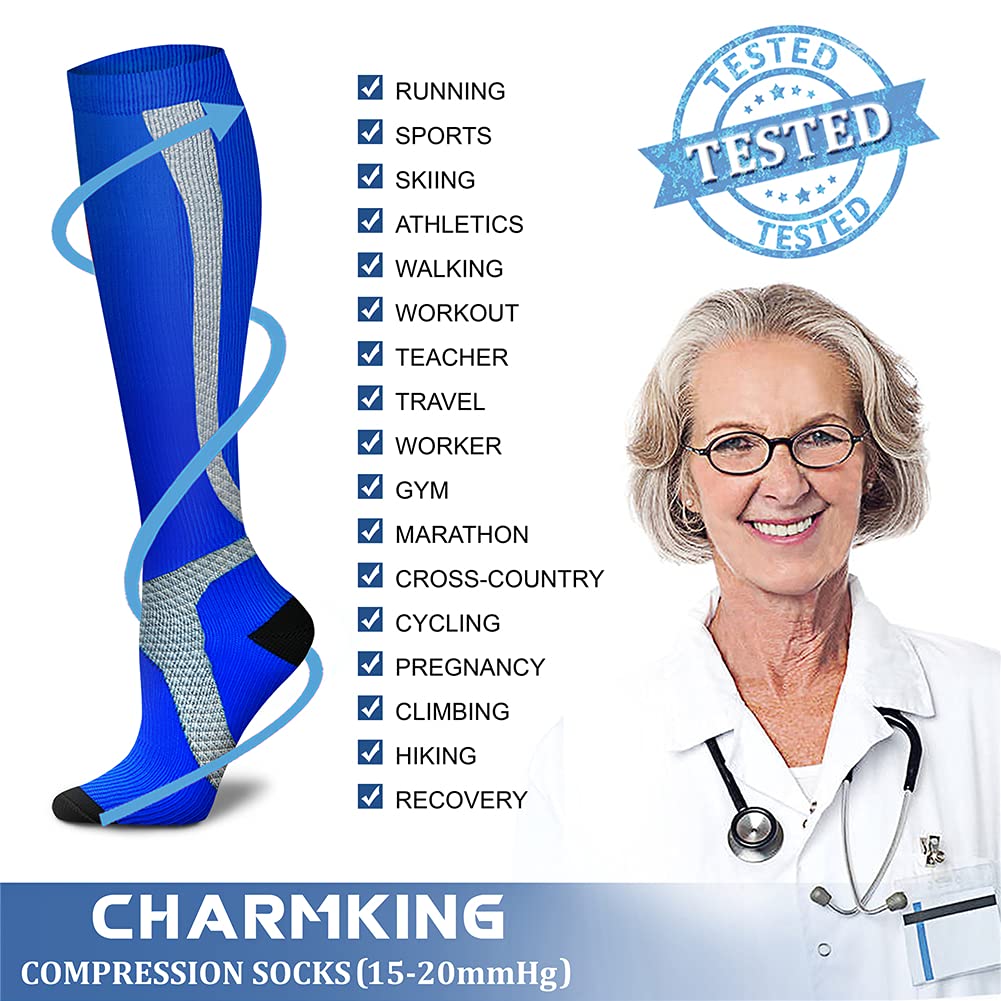 COMPRESSION SOCKS - We intend combining fashion, technology and science to bring you the triple comfort without. The material of our compression socks are upgraded with nylon percentage from 40% to 85%. Delivers 360-degree stretch for greater flexibility and durability. Breathable high performance fabric keeps an optimal temperature.
