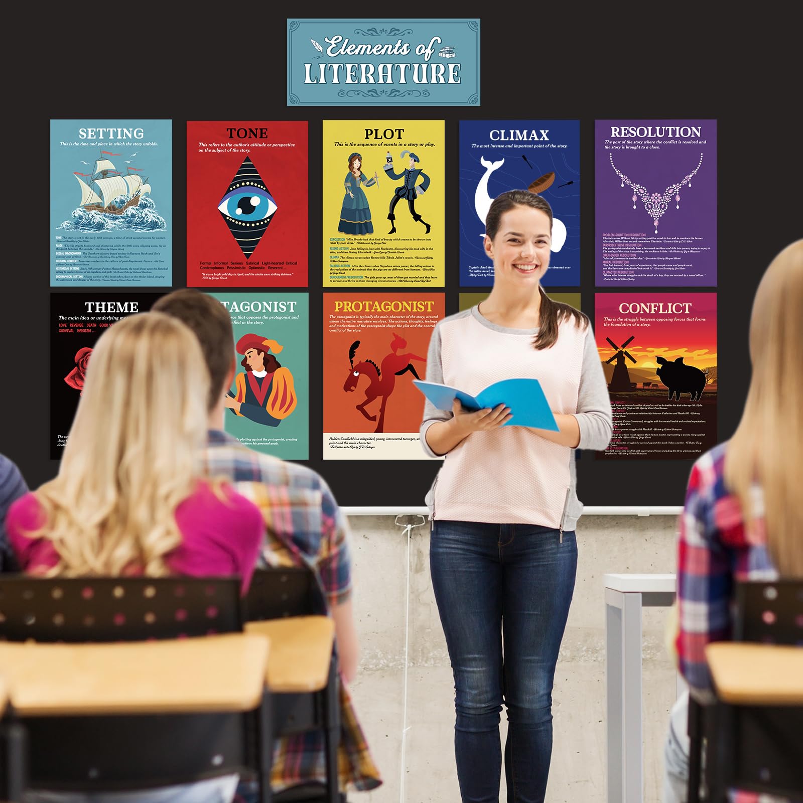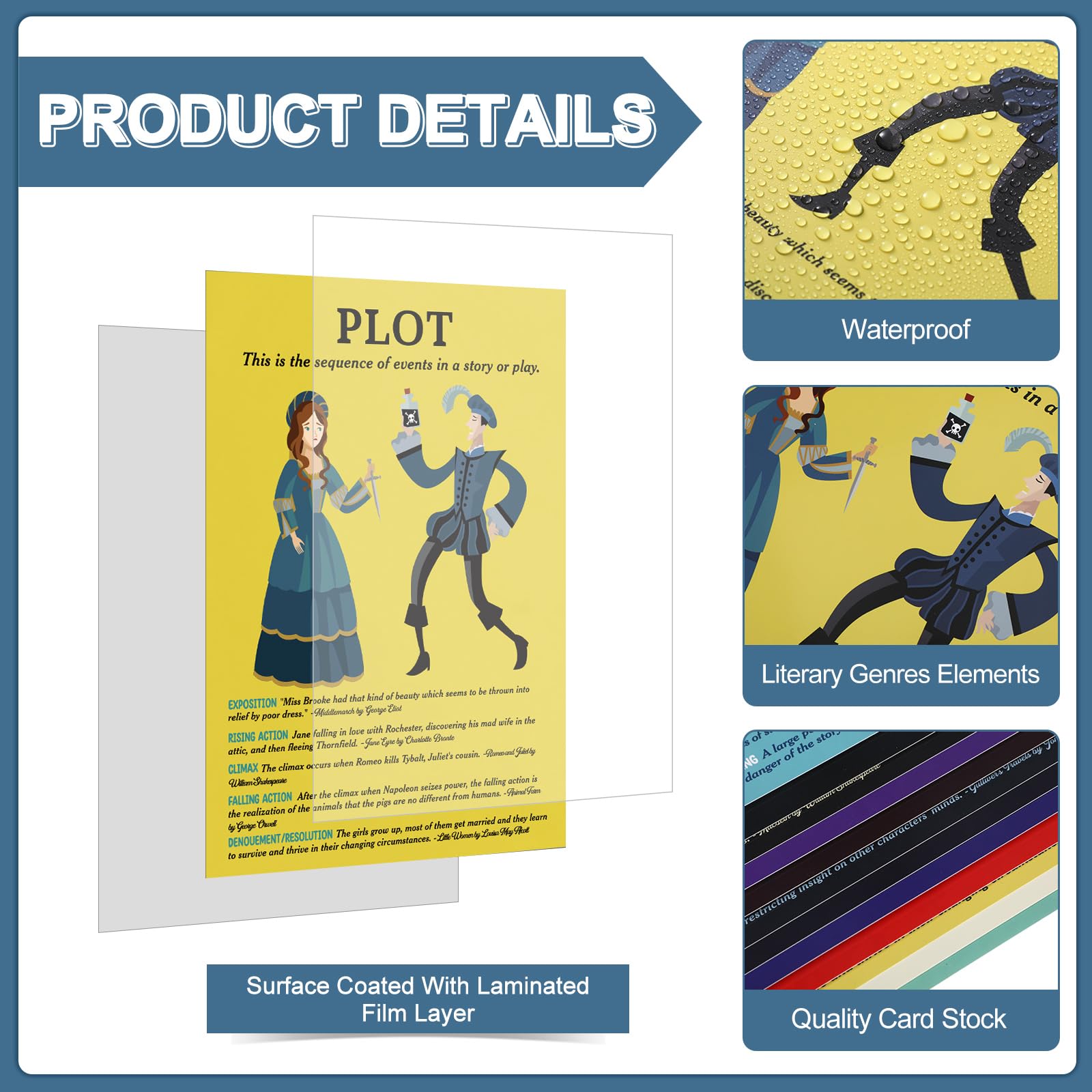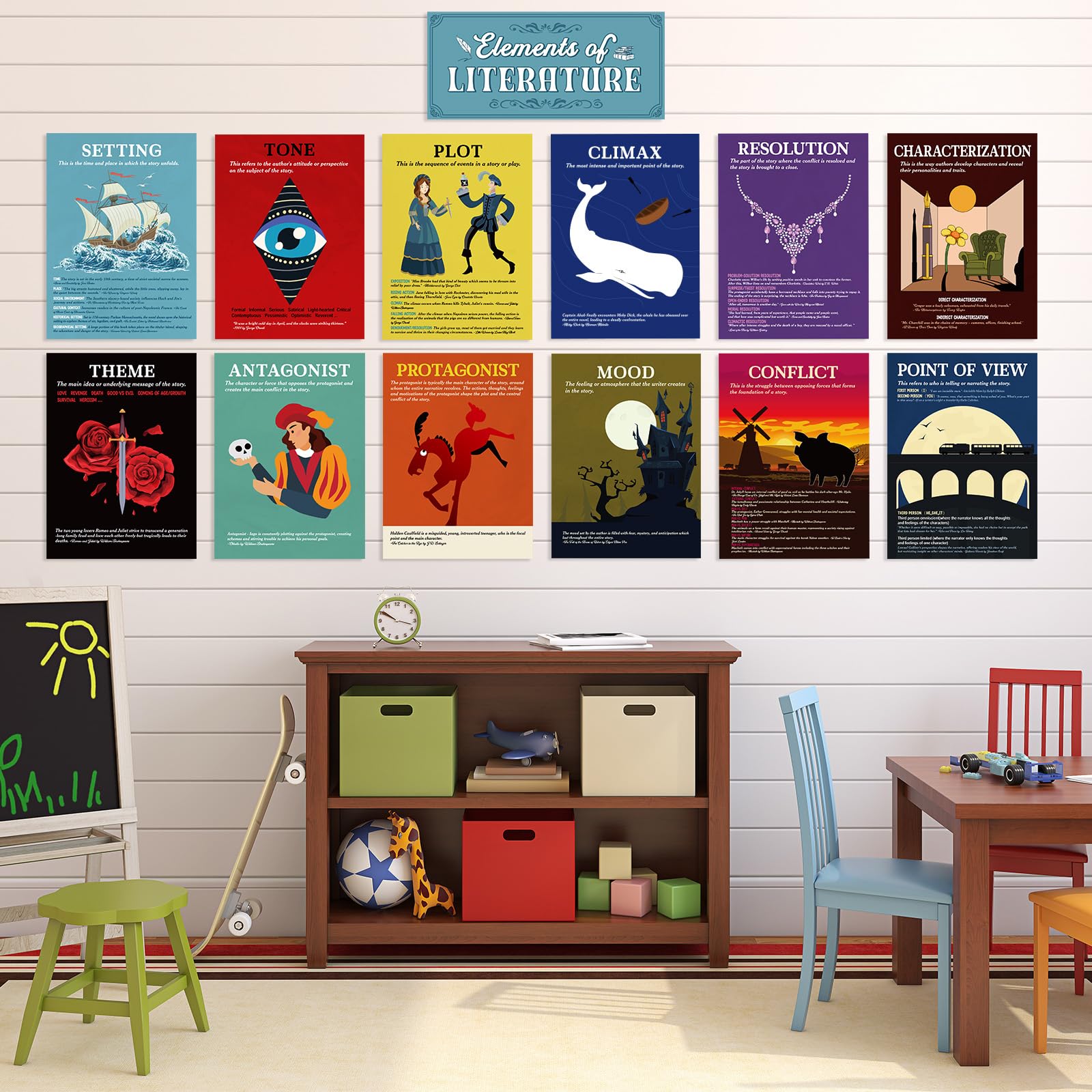 Elements of Literature Posters: you will receive 13 pieces of literature wall posters, each literary poster has an explanation of literature, come with 40 pieces of adhesive dots, these literature art prints can meet school literature arts educational needs or homeschooling needs