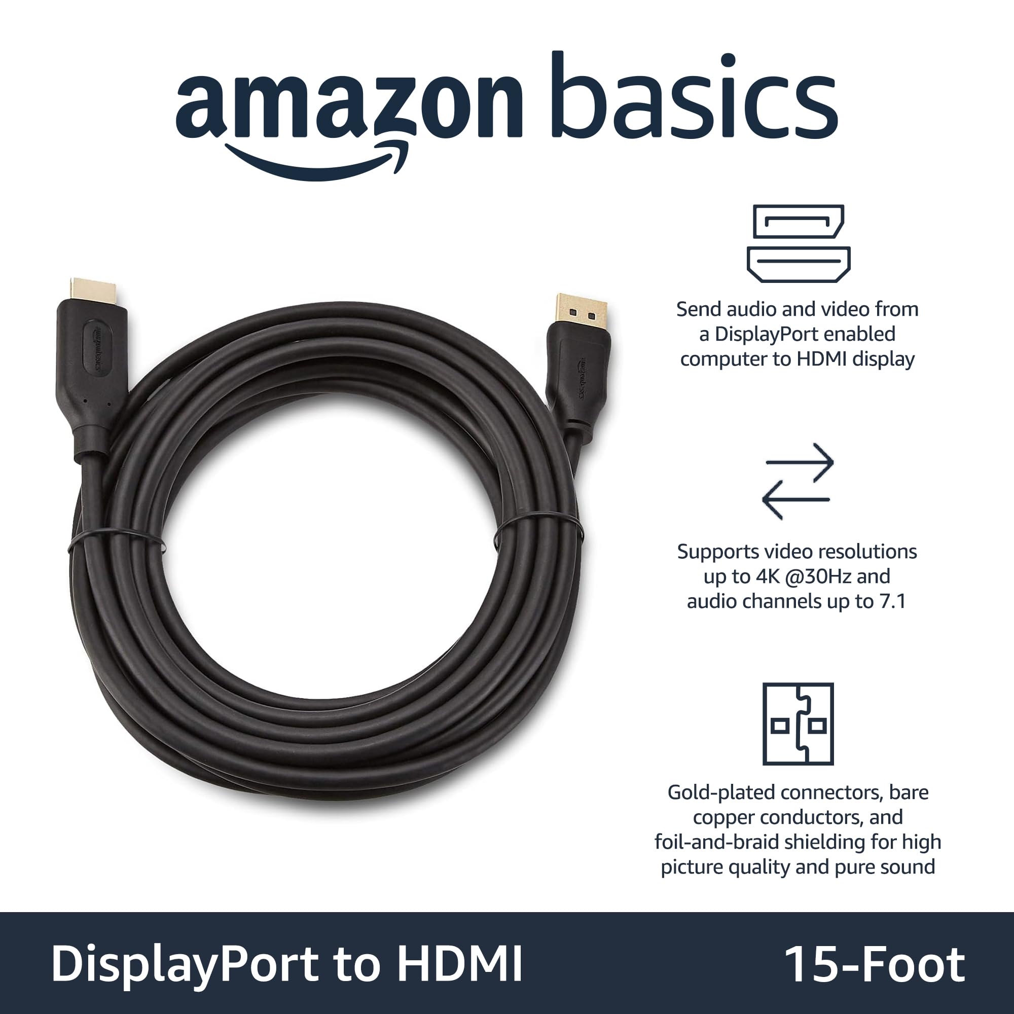 Product Description Amazon Basics Uni-Directional DisplayPort to HDMI Display Cable 4K@30Hz - 15 Feet From the Manufacturer Amazon Basics