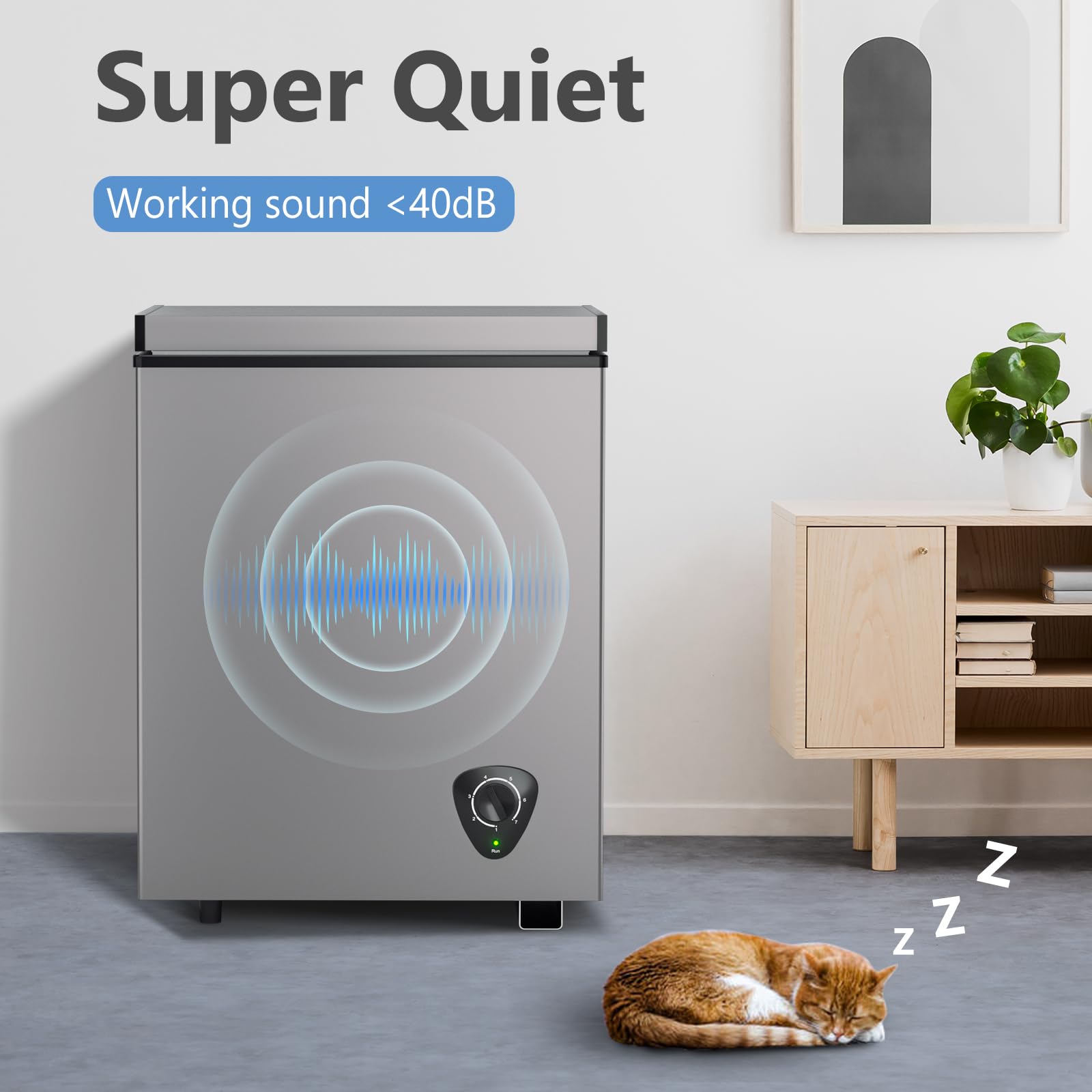 【Super Quiet】:This small chest freezer compressor runs very quietly when it is working. we specially deal with its noise so that the noise will not be louder than 40 db. Say goodbye to too much noise and heat to disturb your rest and work
