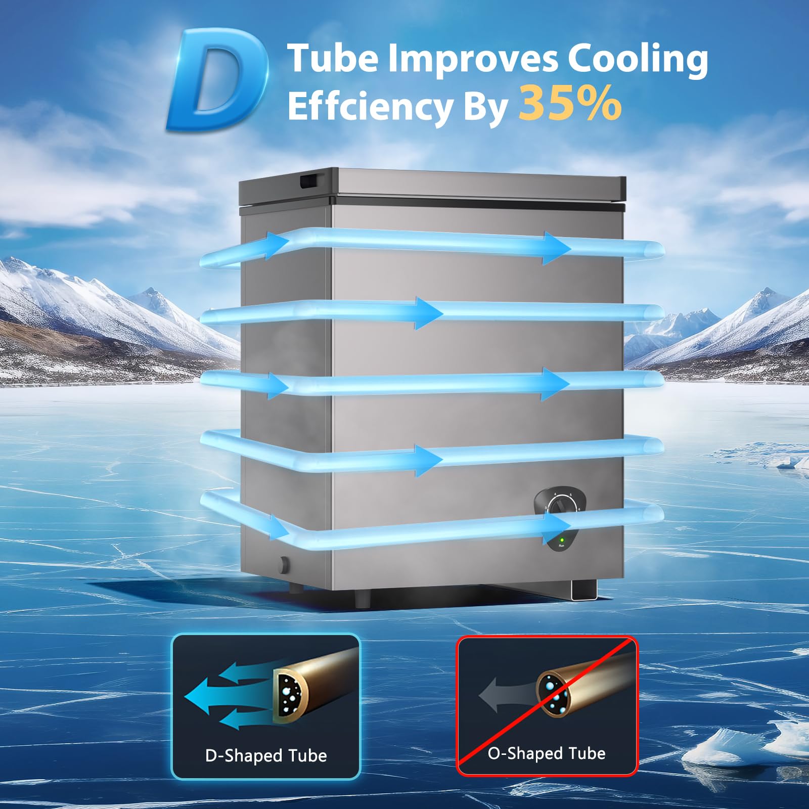 【Power Saving】:High efficiency and low energy and whisper-quiet consumption compressor makes this freezer chest can cool quickly without much noise. Lower energy consumption design with R600a high-efficiency compressor