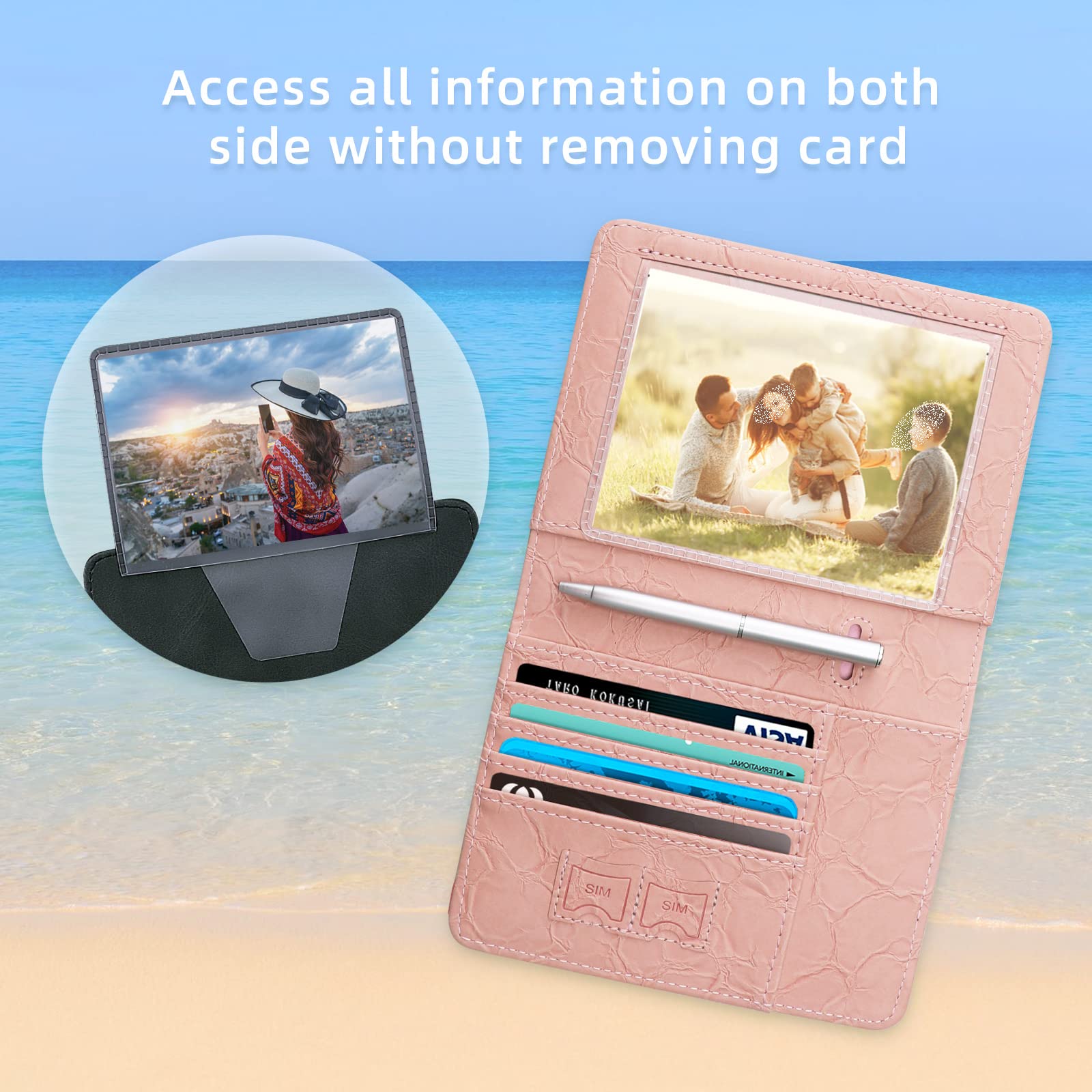Practical Travel Accessories: This passport cover and card wallet has multiple slots to hold business cards, credit cards, cash, boarding passes sufficiently, two SIM slots for SIM cards, a pen slot for pen. Allows convenient access to information during boarding and transit