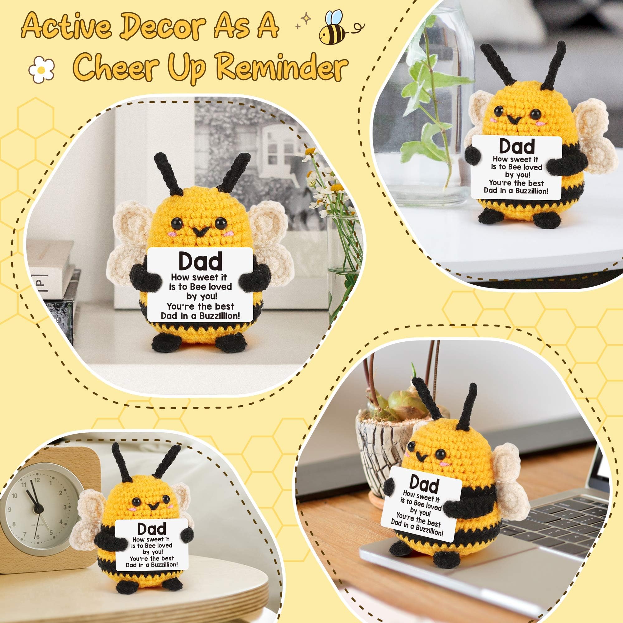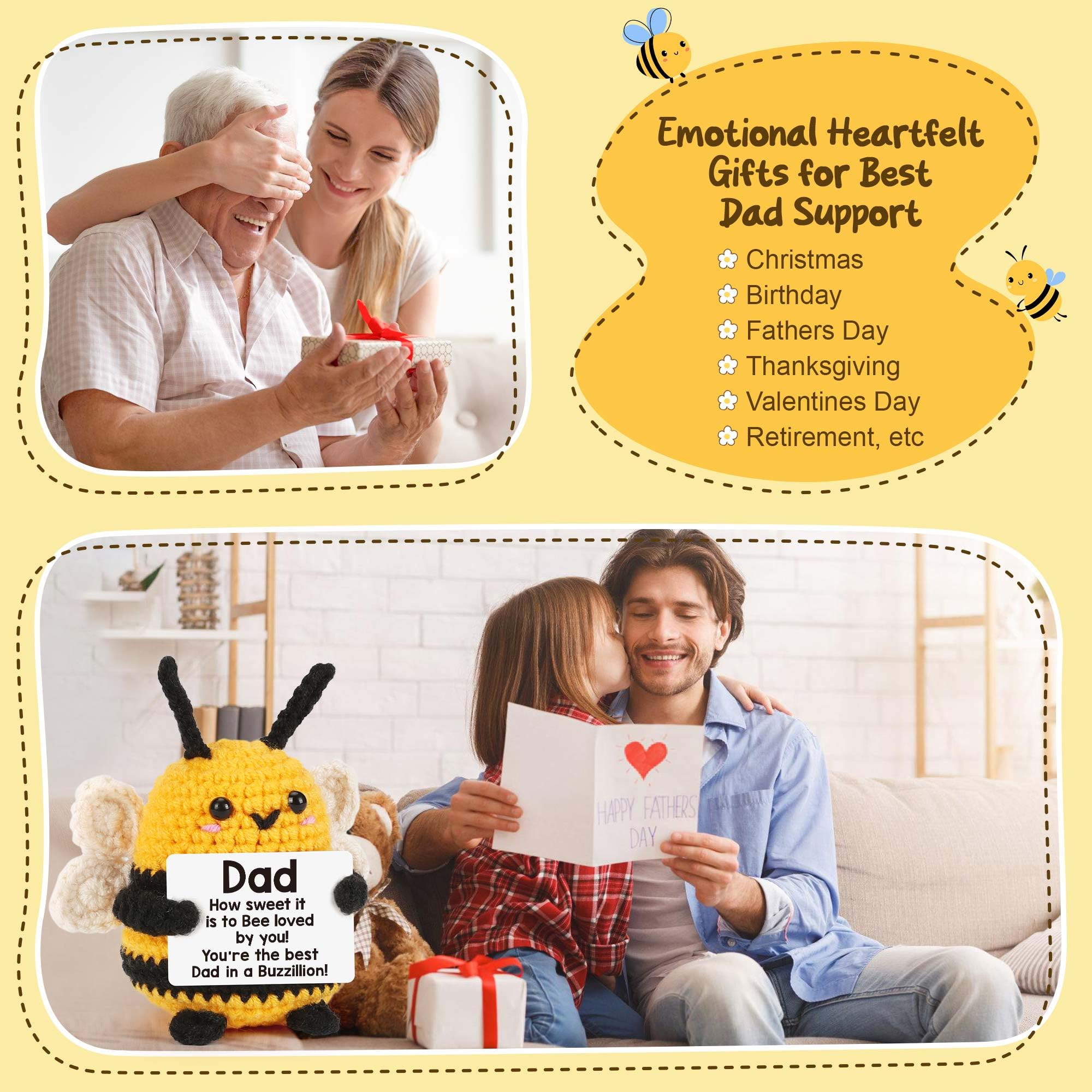 Gift for Dad Who Want Nothing - A funny dad stocking stuffers, a cute mini handmade crochet bee with positive message "Dad, How sweet it is to Bee loved by you! You're the best Dad in a Buzzillion!" to tell your dad how much you love and appreciate him; Best dad ever, birthday gift for daddy, grandpa, papa, husband gifts from wife, dad gifts from daughter/son