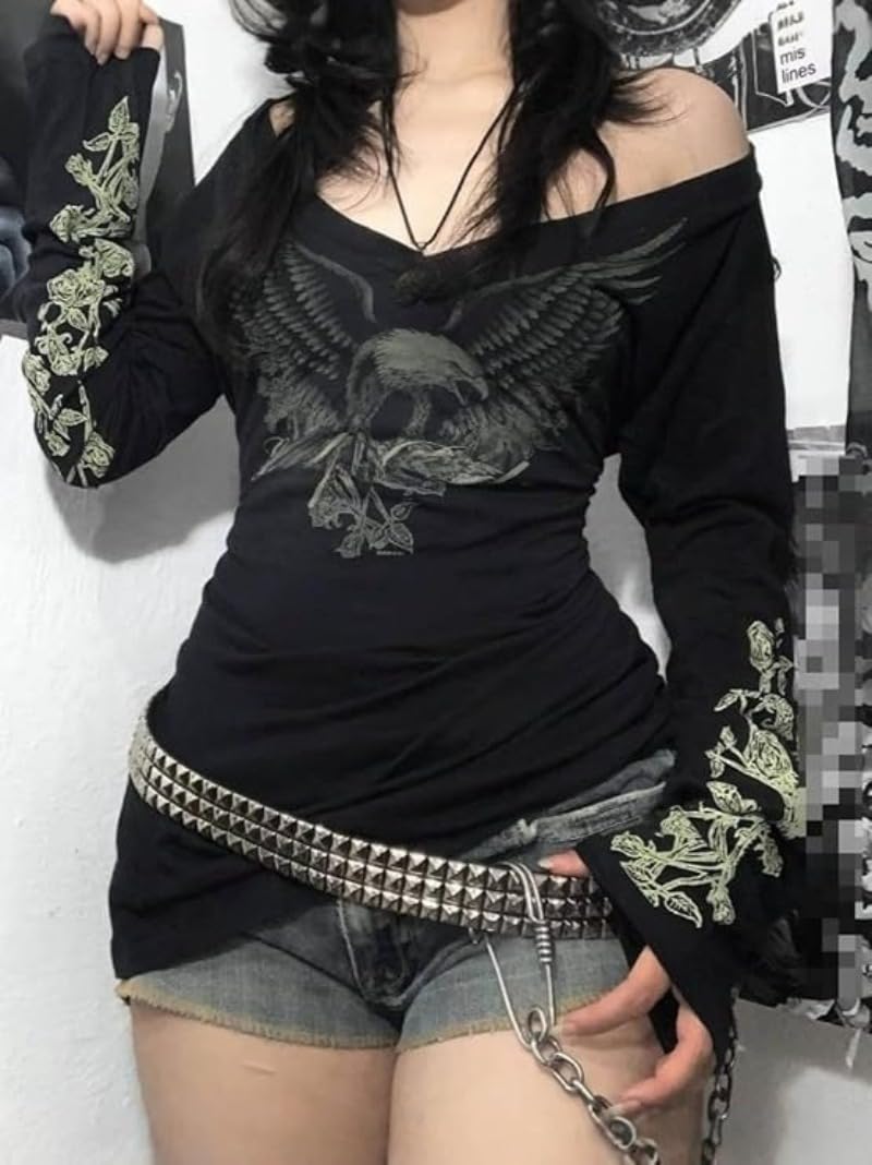 Feature: vintage long sleeve shirts,long sleeve graphic tees for women,graphic long sleeve shirts for women,grunge clothing, emo tops for teen girls, emo outfits for women, 2000s outfits for women, goth clothes for women, y2k shirts, y2k outfits for women, y2k fashion, graphic baby tees for women y2k, women graphic tees, graphic tees for teens, crop tops for teens