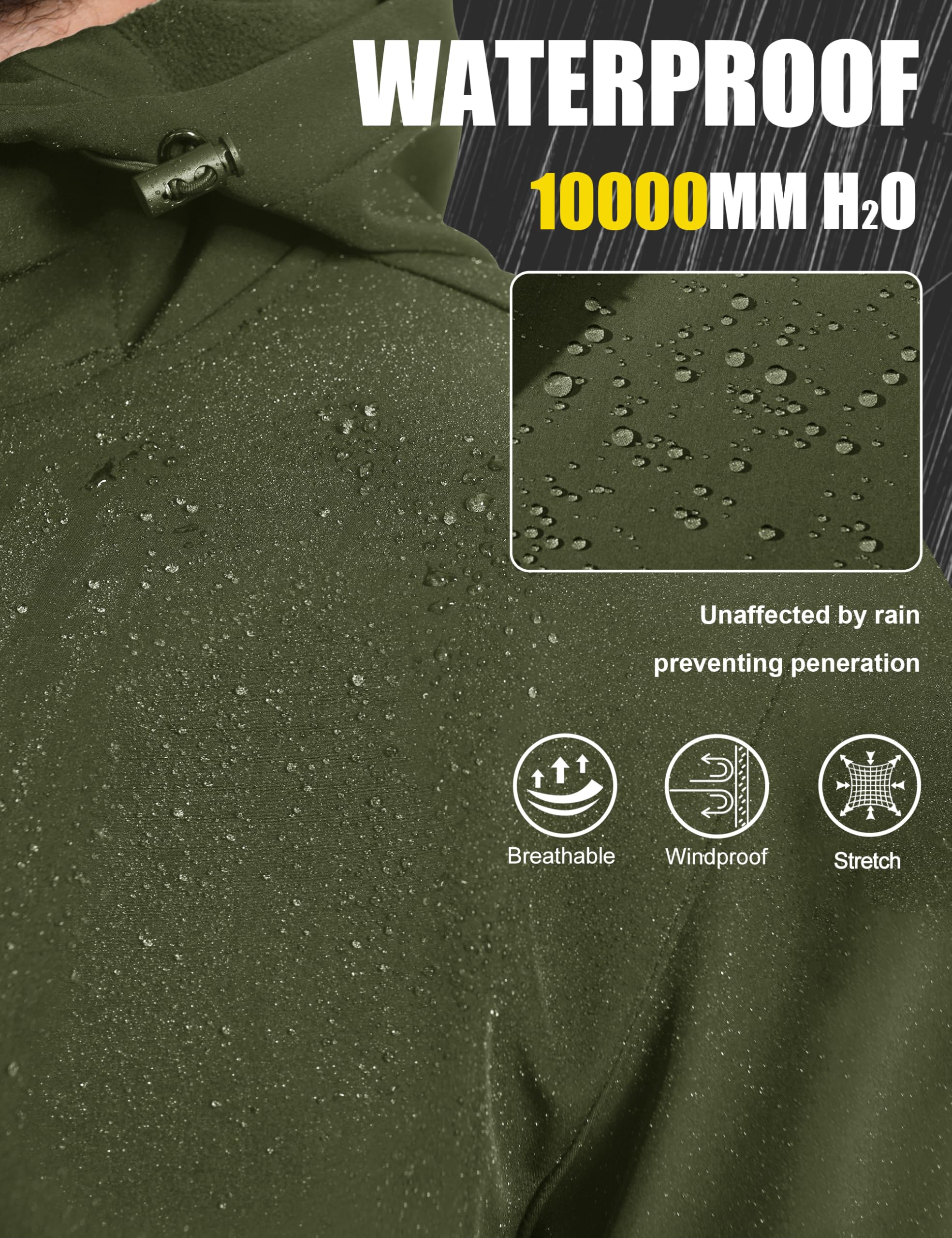 DRAWSTRING HEM - Mens outdoor jacket is designed with rainproof brim, waterproof zipper, drawstring hood, elastic hook & loop cuffs and adjustable drawstring hem for a better fit, shielding you from rain, wind and snow