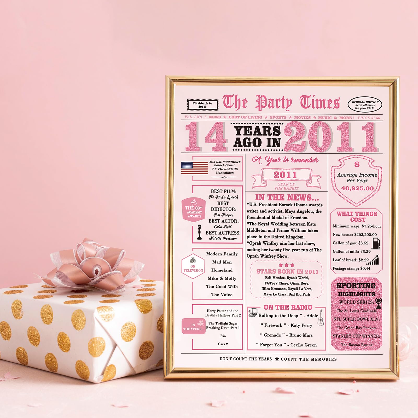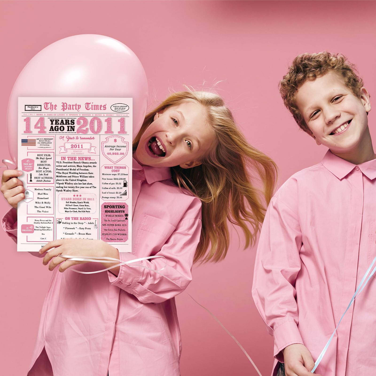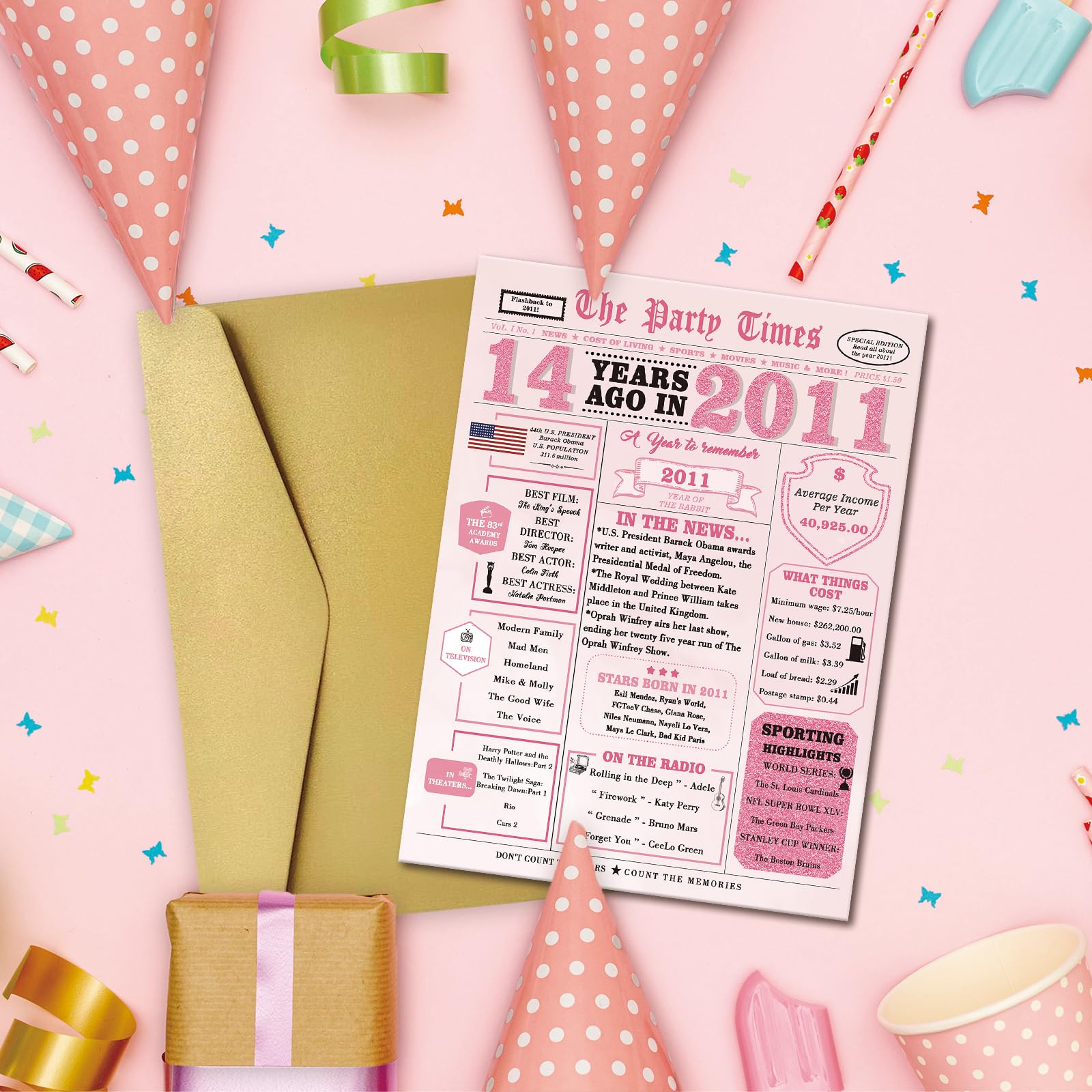 Best 14th Birthday Card: Celebrate your girl's journey of 168 magical months with this cute newspaper-style card that captures her birth year 2011,Turns 14th birthday into a "Born in 2011" time-travel experience,it's more than a card,it's a love letter to the 5,110 days you've watched her grow into this radiant 14-year-old star. This beautifully designed card is perfect for celebrating a special girl's 14th birthday.
