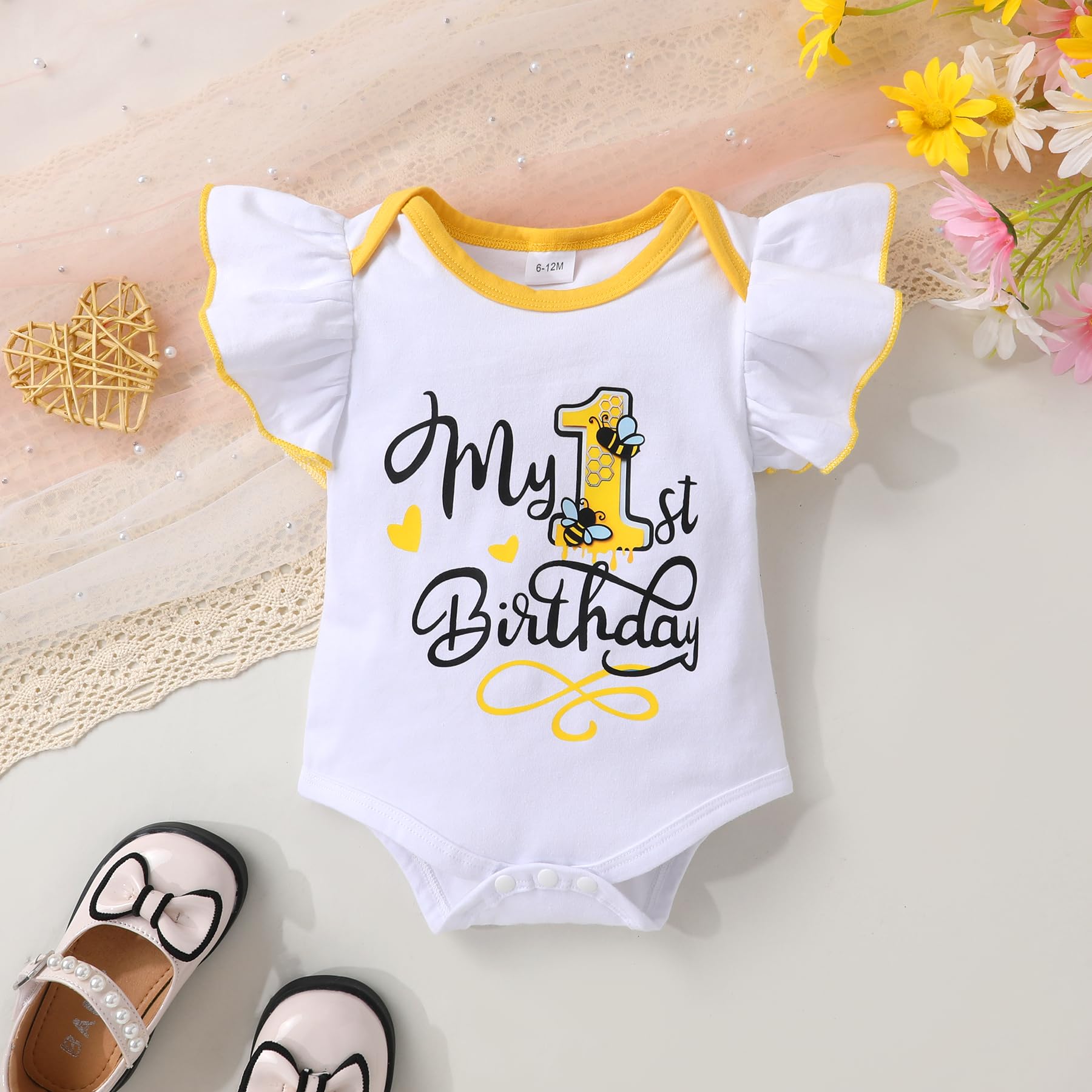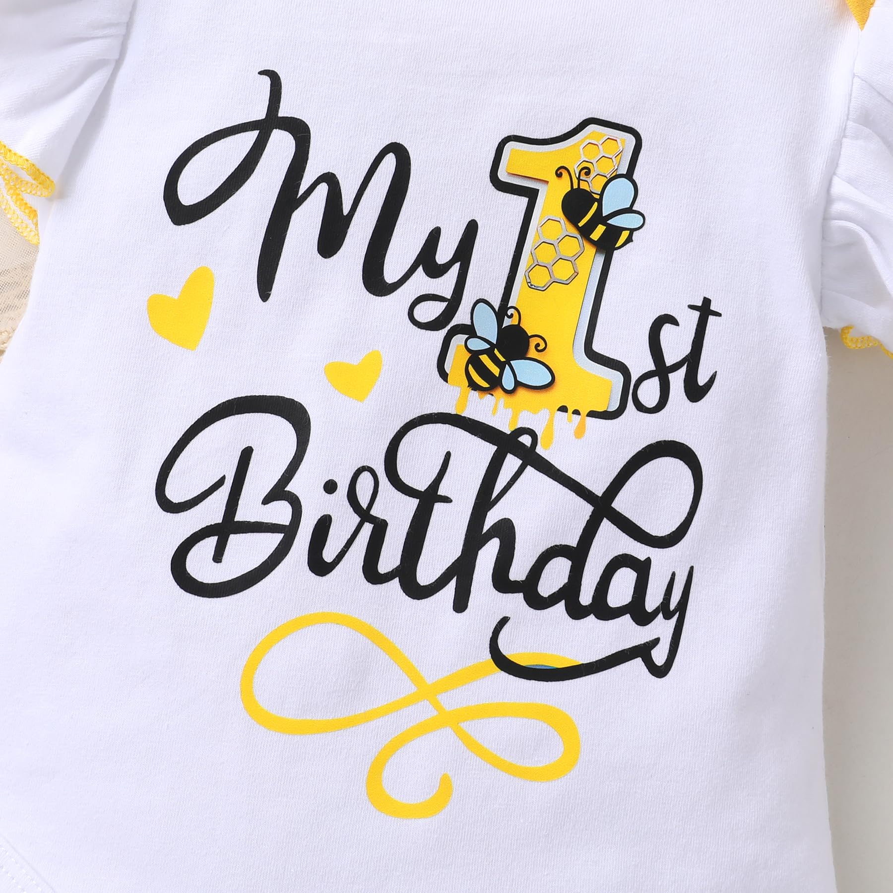 🐝Adorable Design: "ONE"bee/sunflower/cow letters printed in organic cotton romper with yellow tutu skirt, so adorable for your little one.