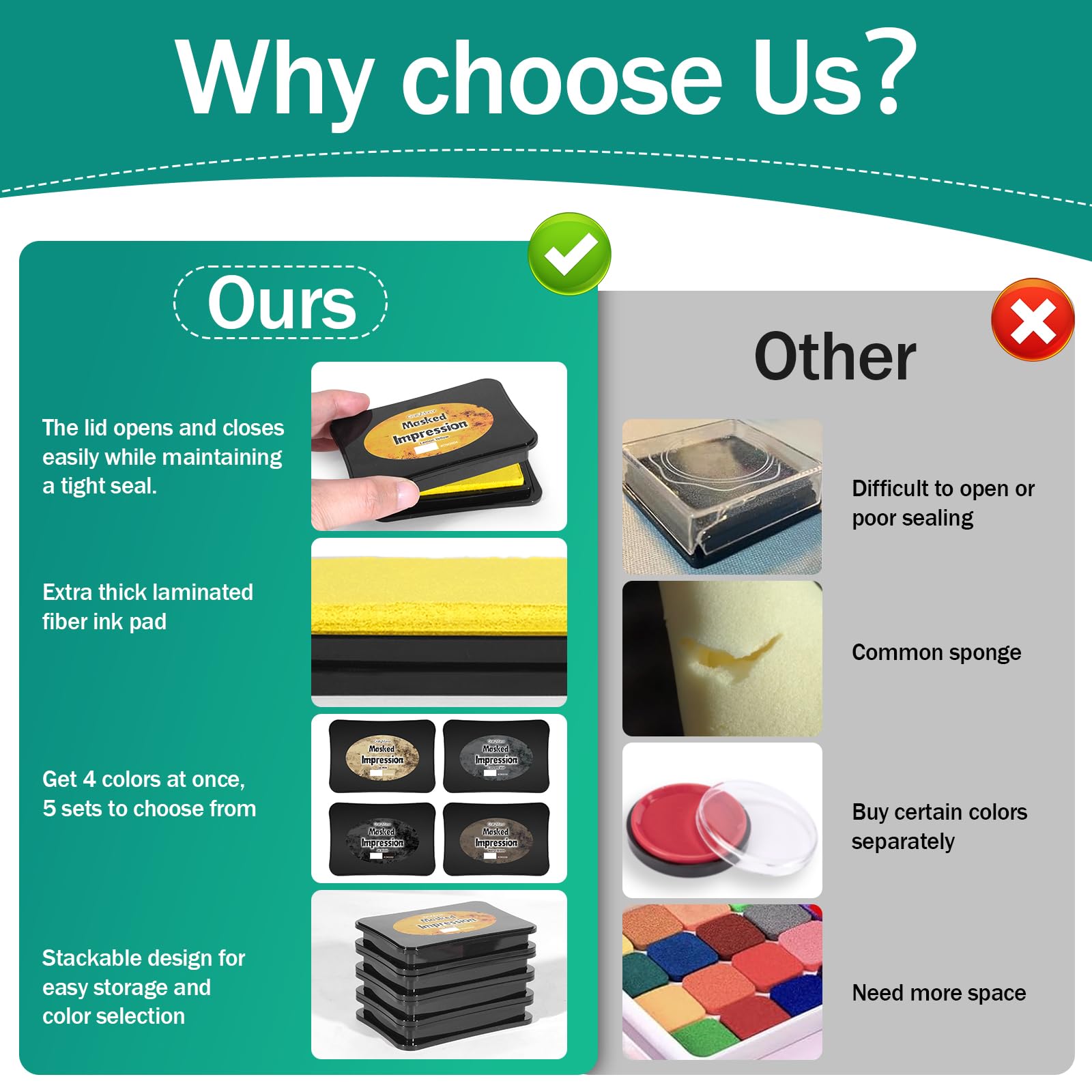 【Extra Thick Laminated Fiber Ink Pad】We've upgraded our ink pad for stamps with rigid laminated fiber material. It holds more ink than standard sponge ink stamp pad, ensuring smoother ink flow without clogging. Thickened to 0.24'', the stamps ink pad holds greater ink capacity for extended use. Its raised profile makes it easier to ink large stamps or use small ink pad for surface inking