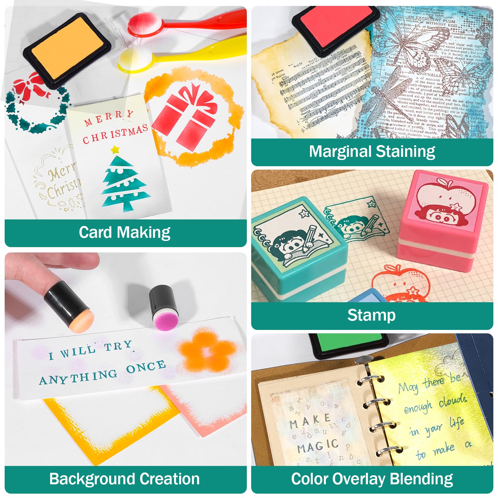 【Get Multiple Colors at Once】CraftyManor offers multi-color combo ink stamp pads sets, you can get 4 colors at once! Different colors of ink pads for stamping can be used together, suitable for card making, scrapbooking, journaling, bookmarks, backgrounds, watercolors, etc.