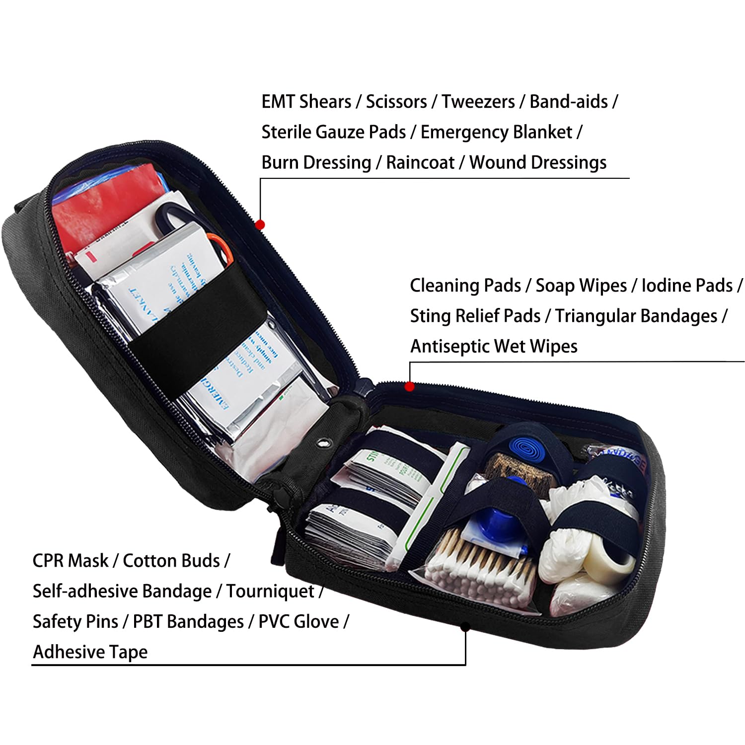 TIPS: Please attach the kit on a platform where you can get at the first time, make sure the kit is secured, that will make it easy to access medical supplies in an emergency