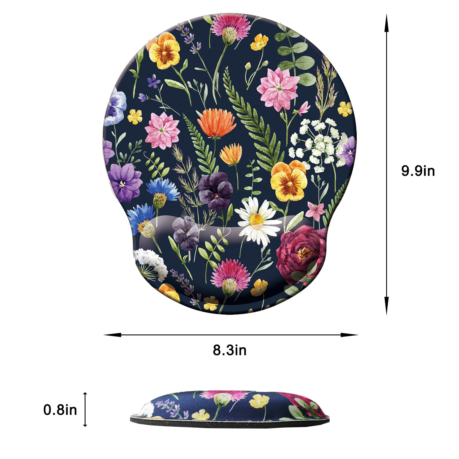 ERGONOMIC - Approximately 9.9 in x 8.3 in, 0.8 in thick. The reinforced edges are not easy to deform and damage, no curl up on edges. Ergonomic soft wrist rest mouse pad provide good touch and comfortable support for your wrists. Keep arms, wrists, and hands from getting sore when using computer for long time.