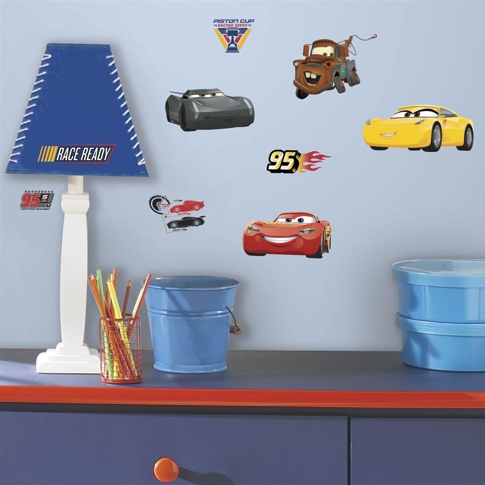 Product Description Get ready for a speedy room transformation with Disney Pixar cars 3 peel and stick wall Decals by RoomMates decor. Complete with 15 wall Decals, spread this decorative theme throughout an entire room in seconds. The application process is fast and easy. Simply peel and stick Decals to any smooth, flat surface. Remove, reposition, and reuse as often as needed while keeping walls and Decals completely safe. Recreate this look in your room today with RoomMates. From the Manufacturer Since 2006, RoomMates, the world’s largest manufacturer of peel and stick decorative products, has enabled consumers across the globe to transform their walls and other room accessories quickly, effortlessly and affordably. RoomMates offers the largest, most varied (and we like to think “coolest”) selection of Wall Decals and Peel & Stick Wallpapers that install, reposition and remove in seconds without ever leaving any sticky residue or damage to the surface. Our Peel & Stick StickTiles™ enable you to create a backsplash in minutes giving you the opportunity for a fun, fast, easy and always great-looking room/accessory make-over. Just Peel, Stick… Done! Turn an ordinary space, furniture or accessory into anything but ordinary with RoomMates.